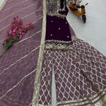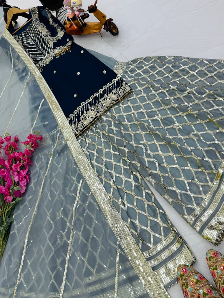 *Palazzo Febric :-* Fox Georgette Hevy Embroidery Siqunce Work