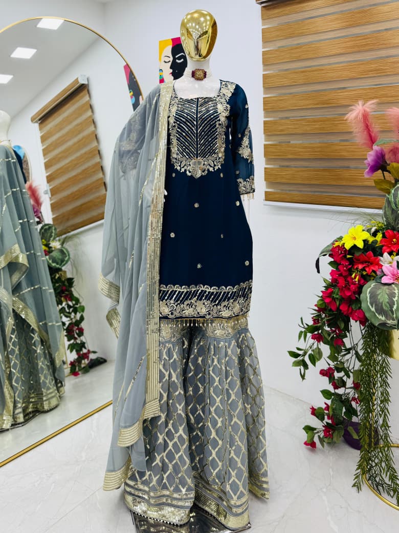 *Top Febric :-* Fox Georgette Hevy Embroidery Siqunce Work