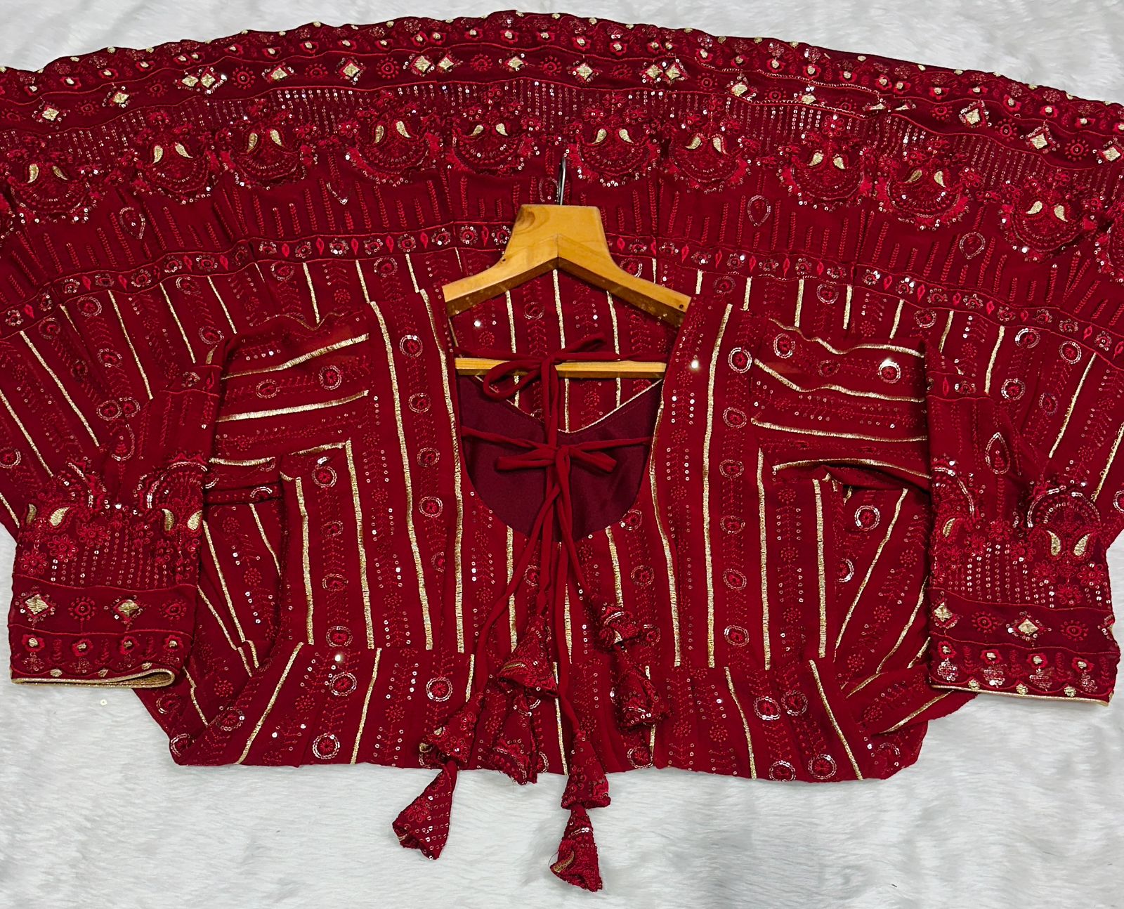 * Fabric: Faux Georgette Fabric codding Embroidery sequence Zari Work With Lace work