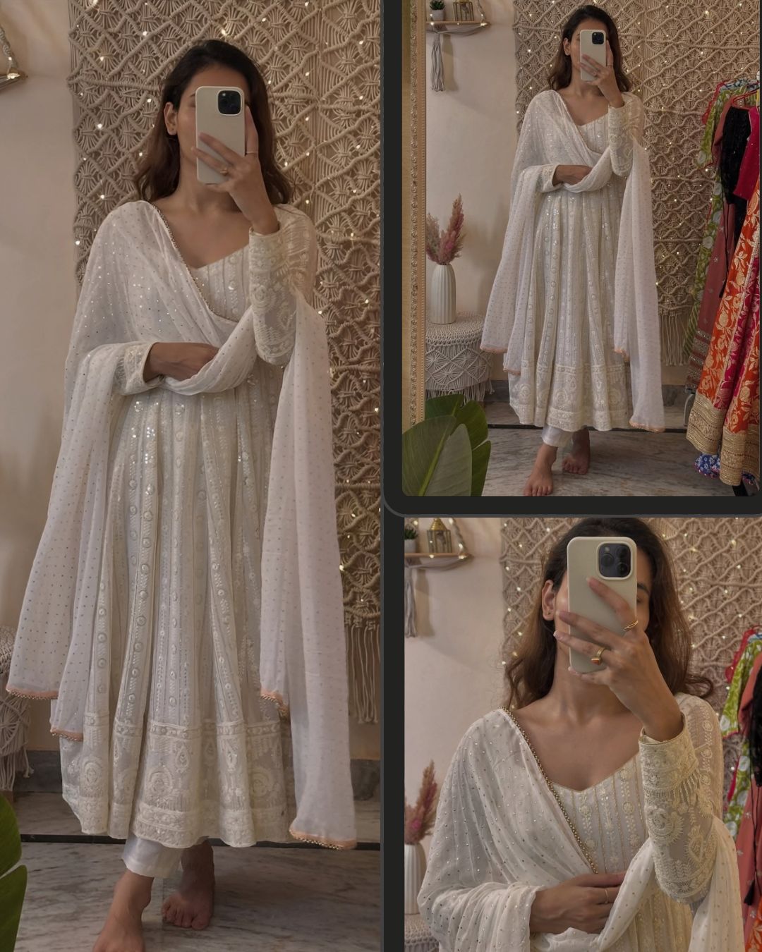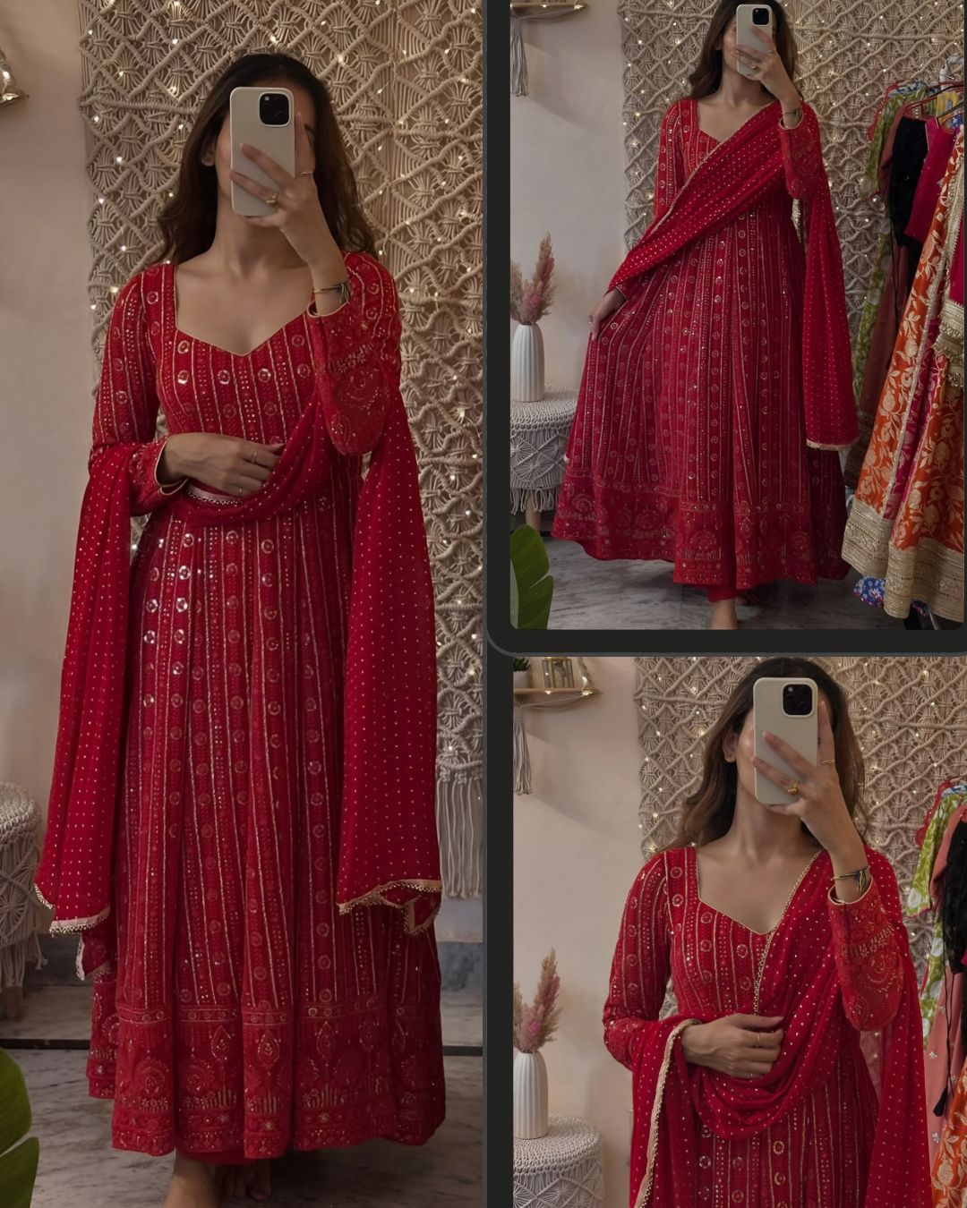 👗 Lakhnavi Embroidered Work Anarkali Suit Set  SET [3 PCS]👗