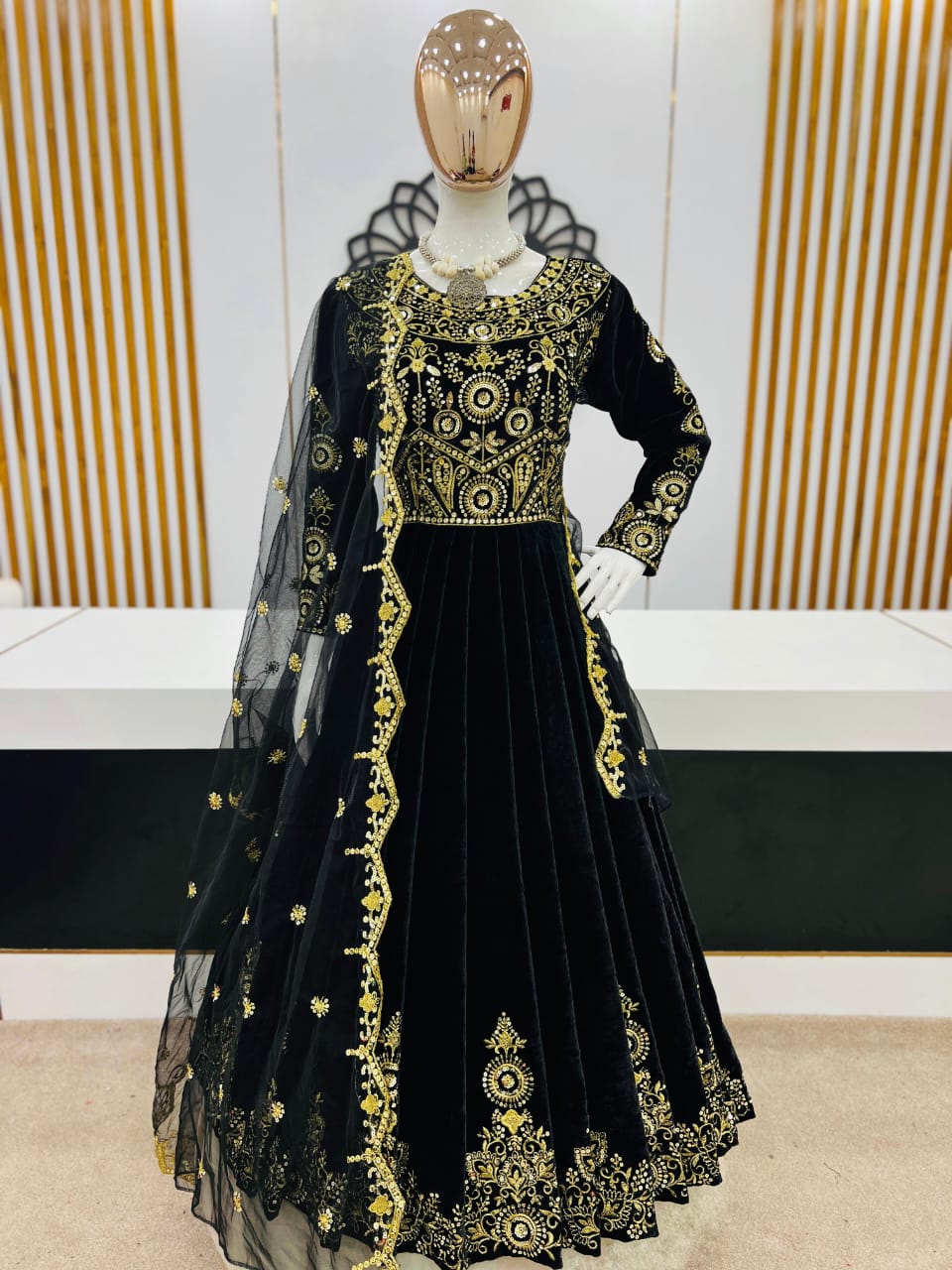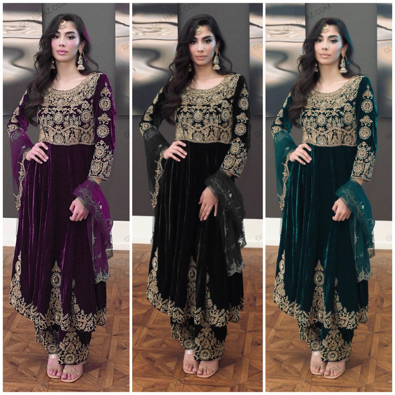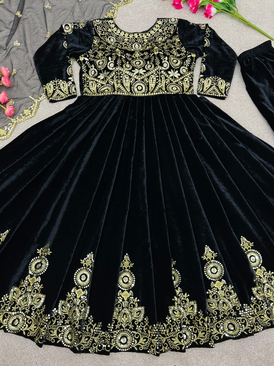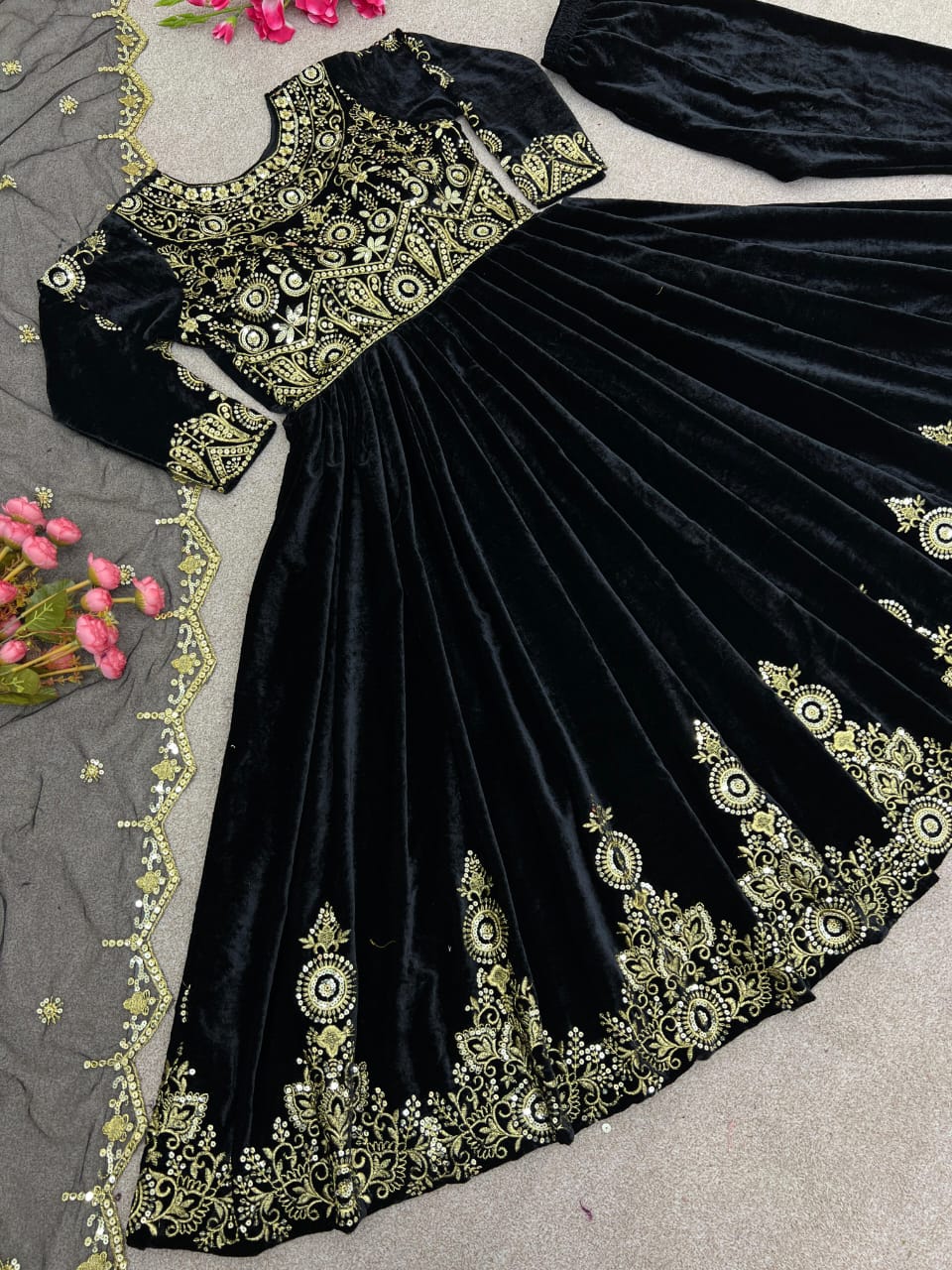 👗 *Bottom Fabric * : Viscose Velvet with Embroidery Sequence Work ( *Full Stiched *)