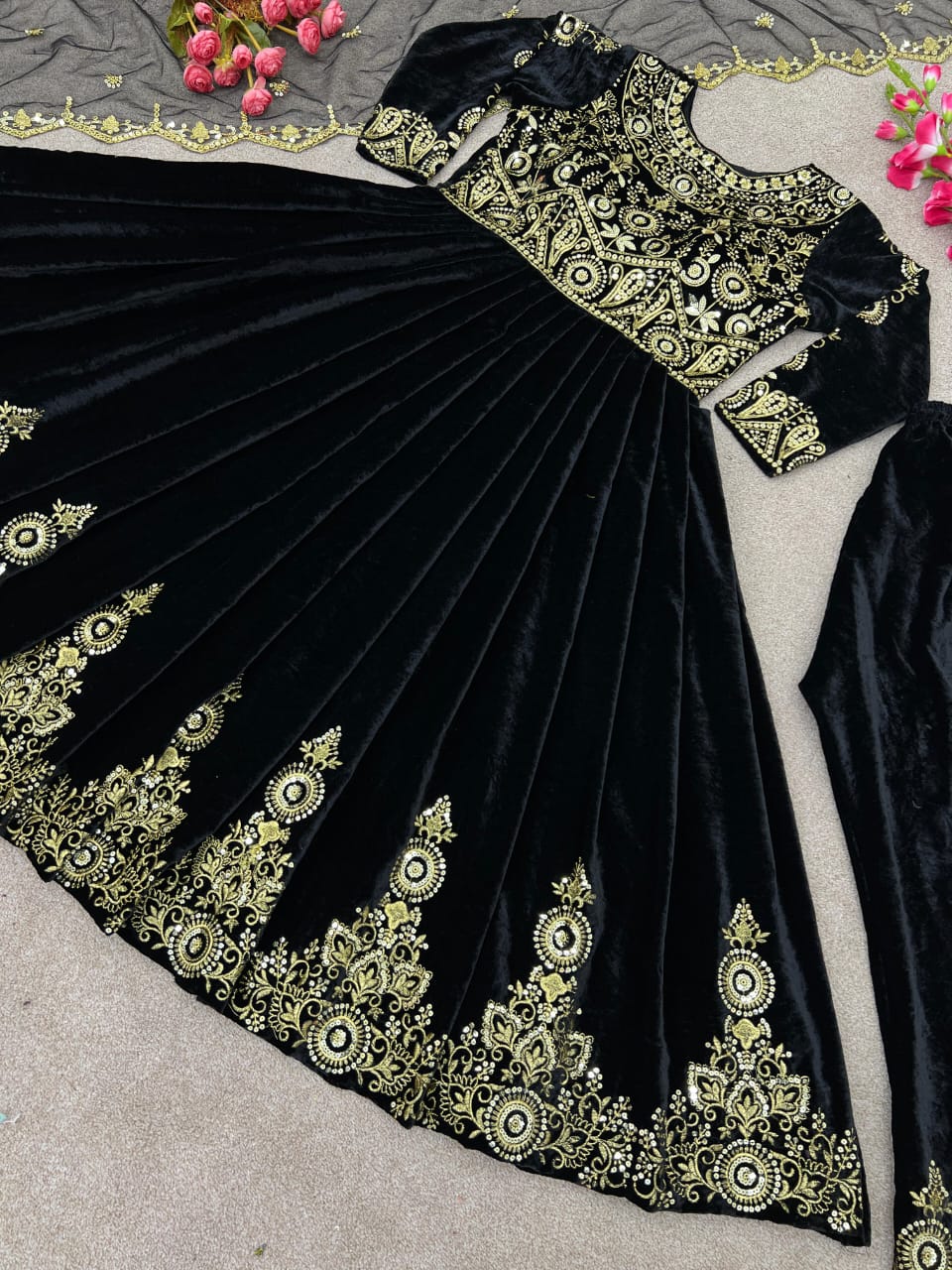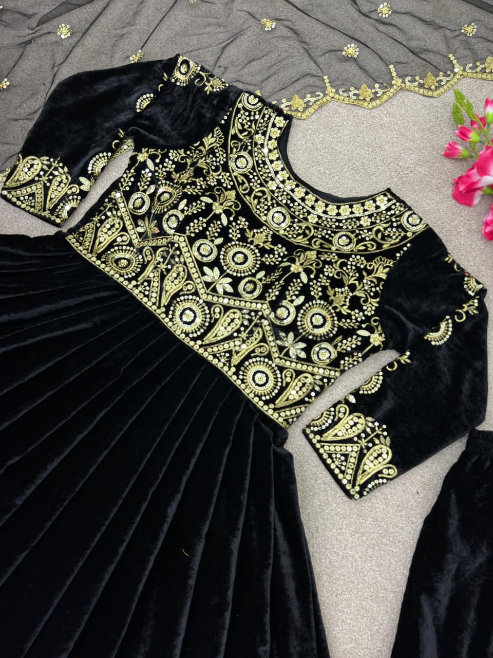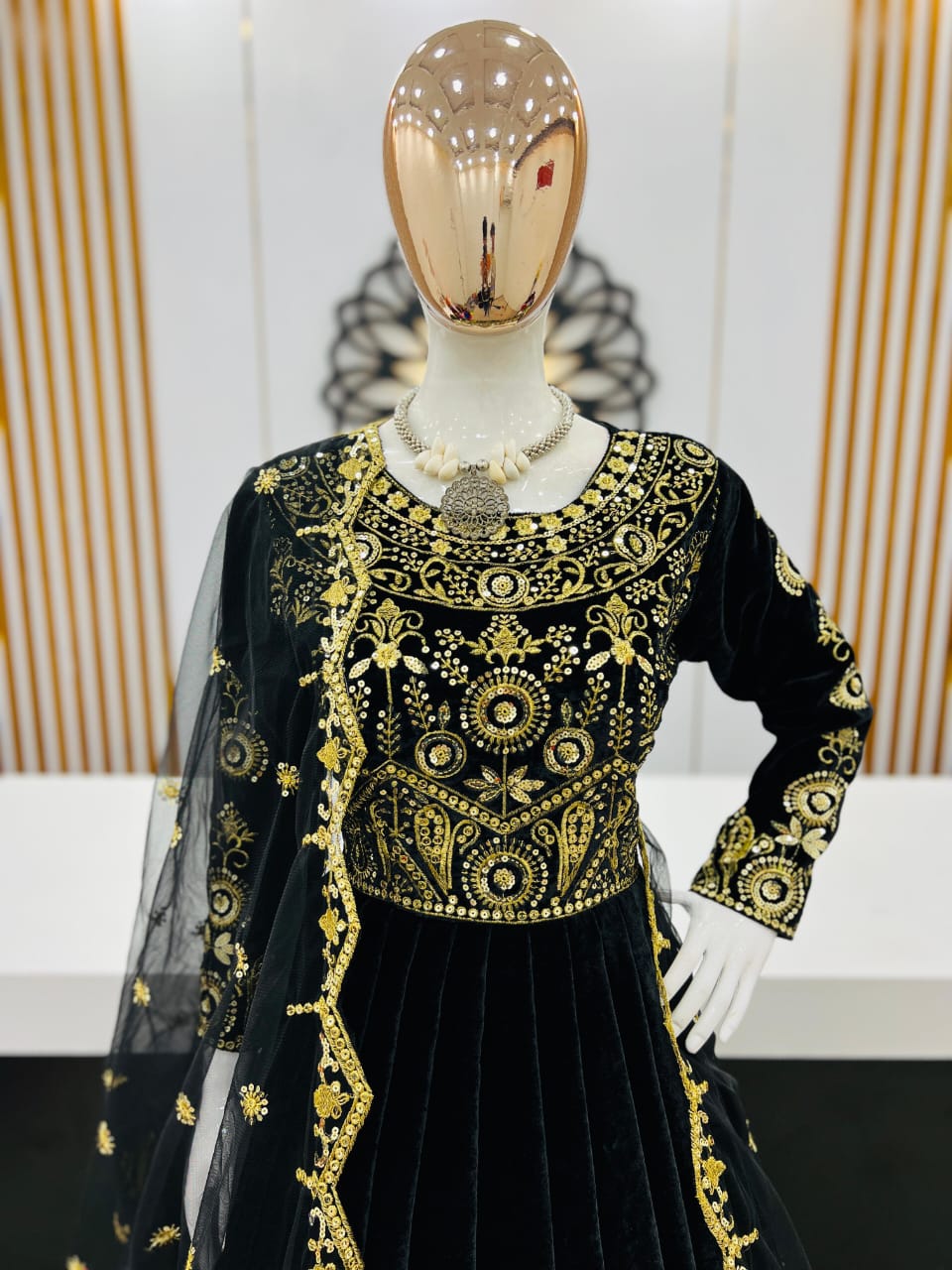 👗 Top Fabric :Heavy Viscose Velvet With Heavy Embroidery Sequence Work With Full Sleeves💃