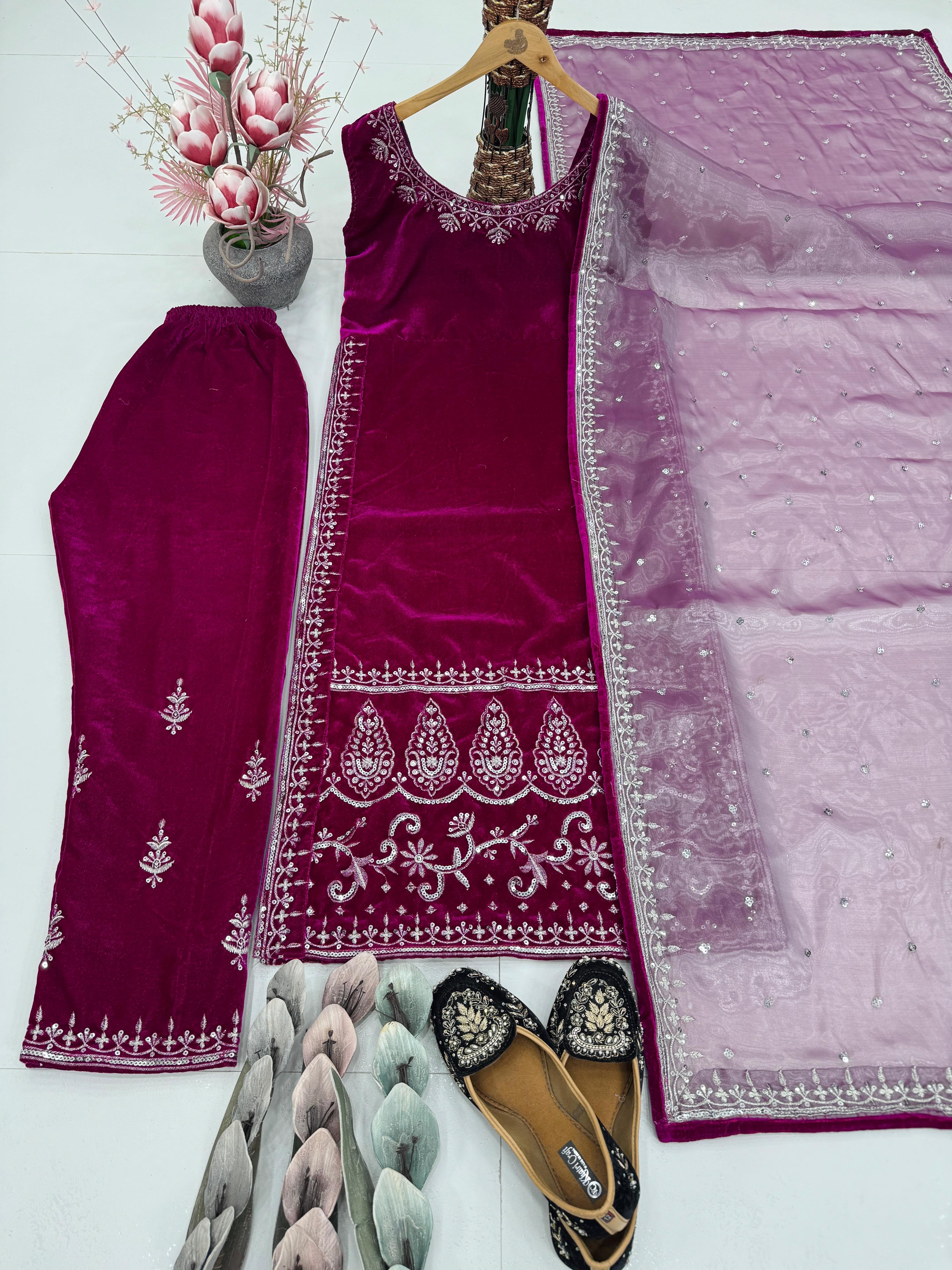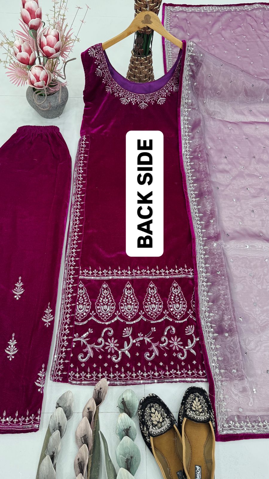 *NEW DESIGNER PARTY WEAR HEAVY VISCOSE VELVET 3 PIS SUIT SET*