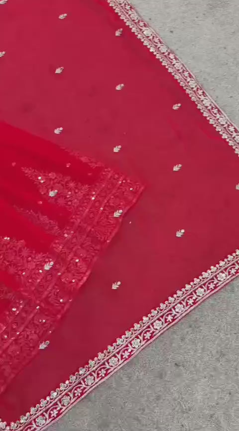 • *Fabric:* *Pure Heavy Georgette With  Embroidery Sequence Work With Less Border*