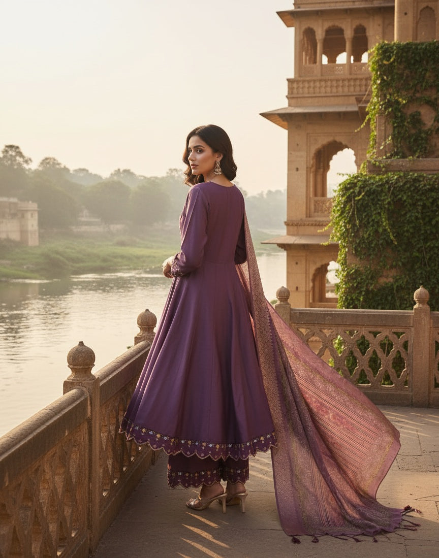 Exquisite Cotton Silk Flared Suit