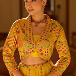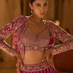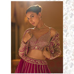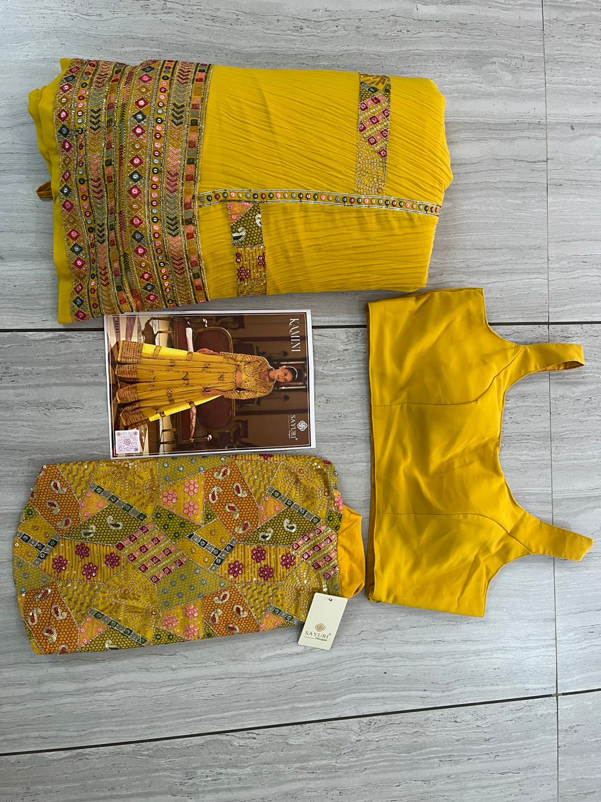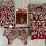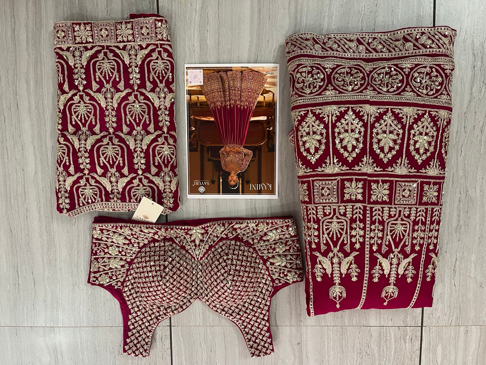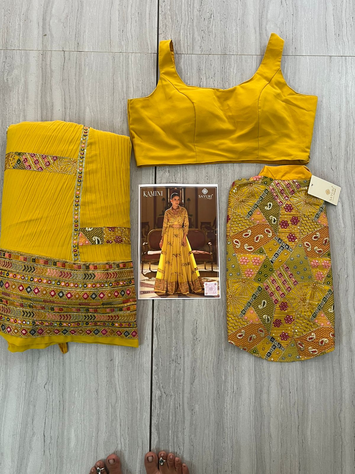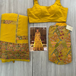 FABRIC - PREMIUM REAL GEROGETTE ( WEDDING LOOK FRONT AND BACK HEAVY EMBROIDERED SHORT SHRUG WITH BLOUSE AND LHENGHS WITH CANCAN )