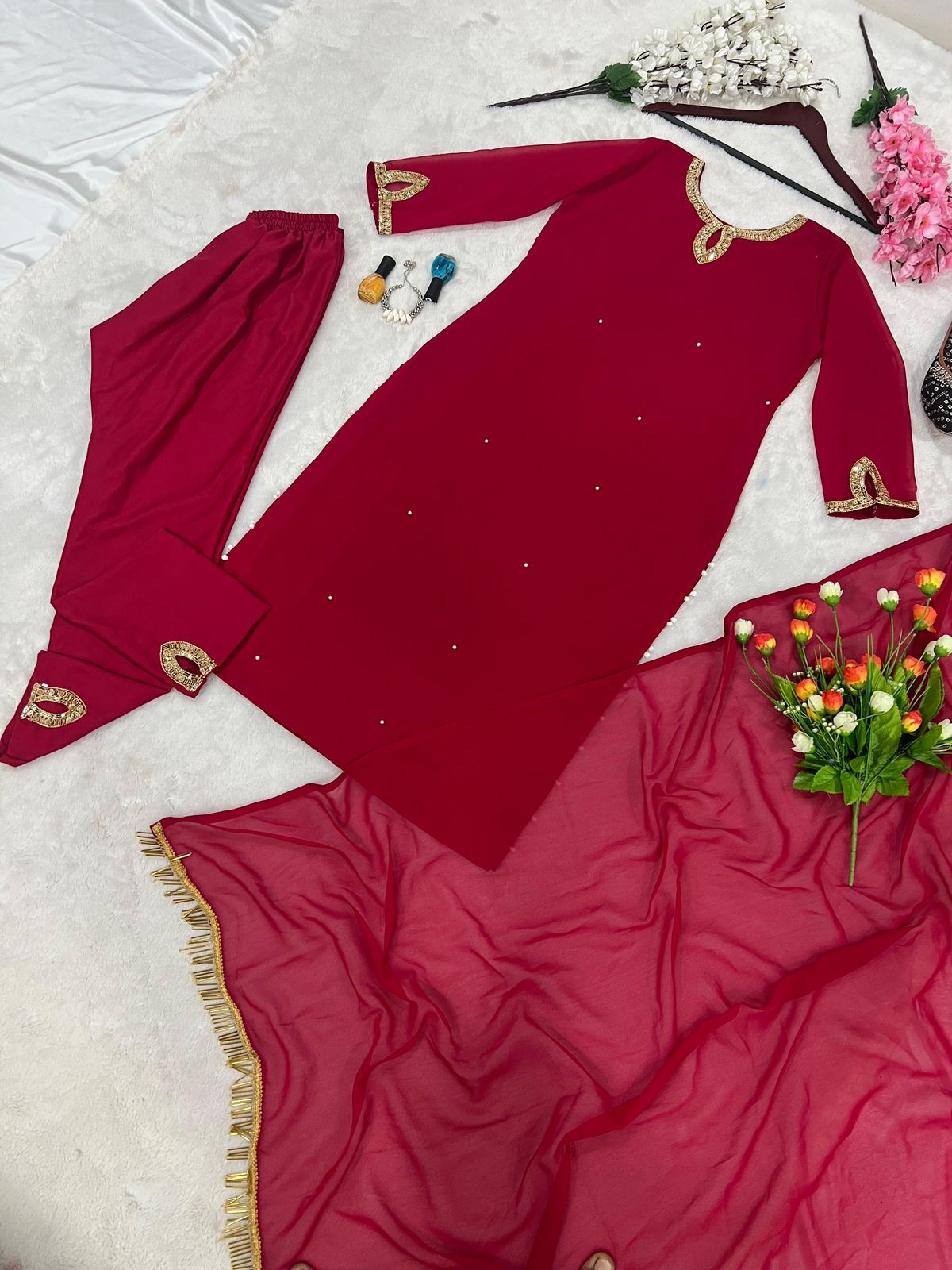 Dupatta Fabric * :Heavy Faux Georgette With *Heavy Piping Lace Border