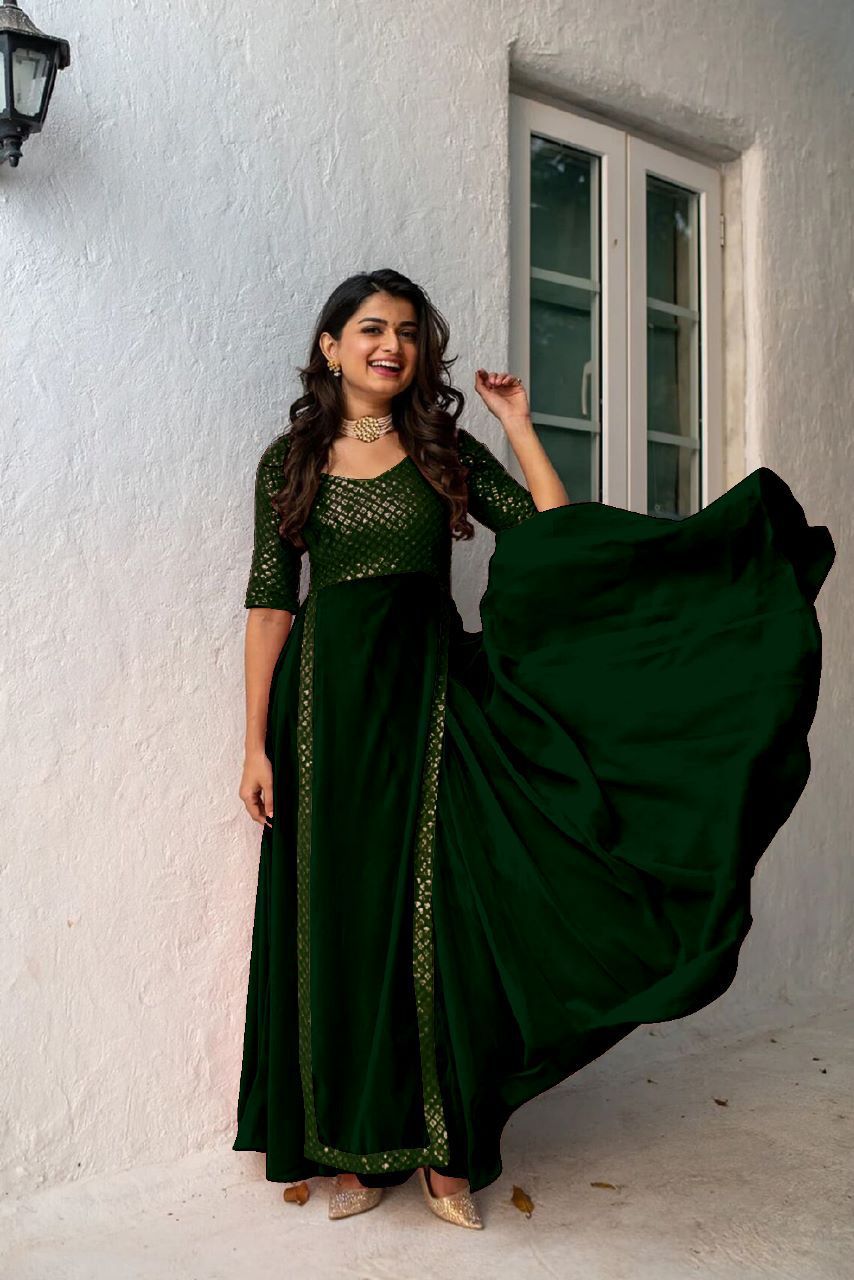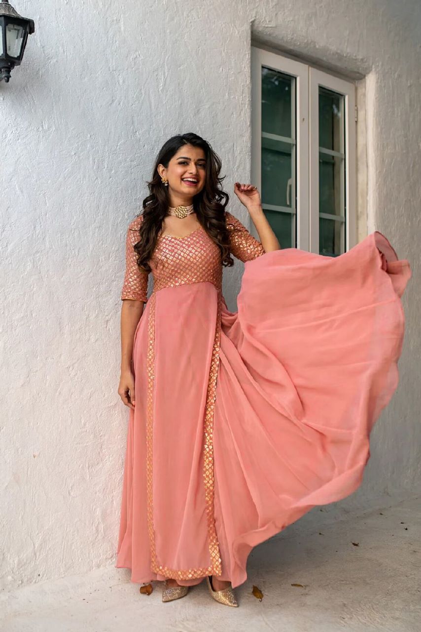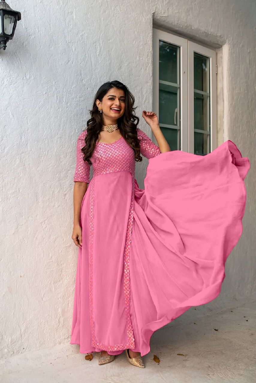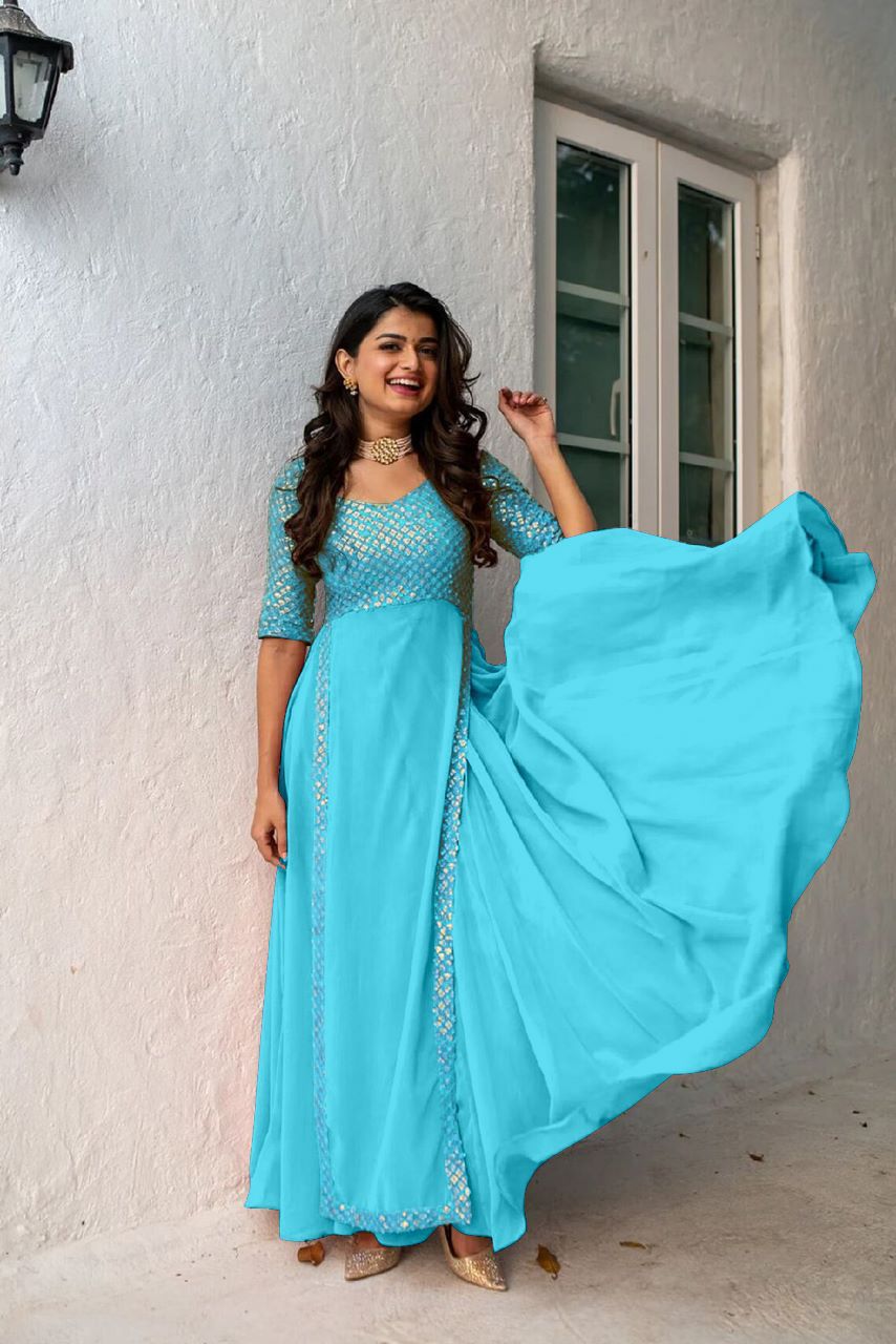 đź‘—Gown Fabric :Heavy Faux Georgette With Embroidery With Sequence Work