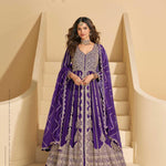 FABRIC - PREMIUM REAL CHINON SILK ( FULL HEAVY LOOK FRONT AND BACK EMBROIDERED FRONT CUT FLOOR LENGTH TOP WITH SKIRT AND EMBROIDERED DUPATTA )Note :- First Ask Stock After Order