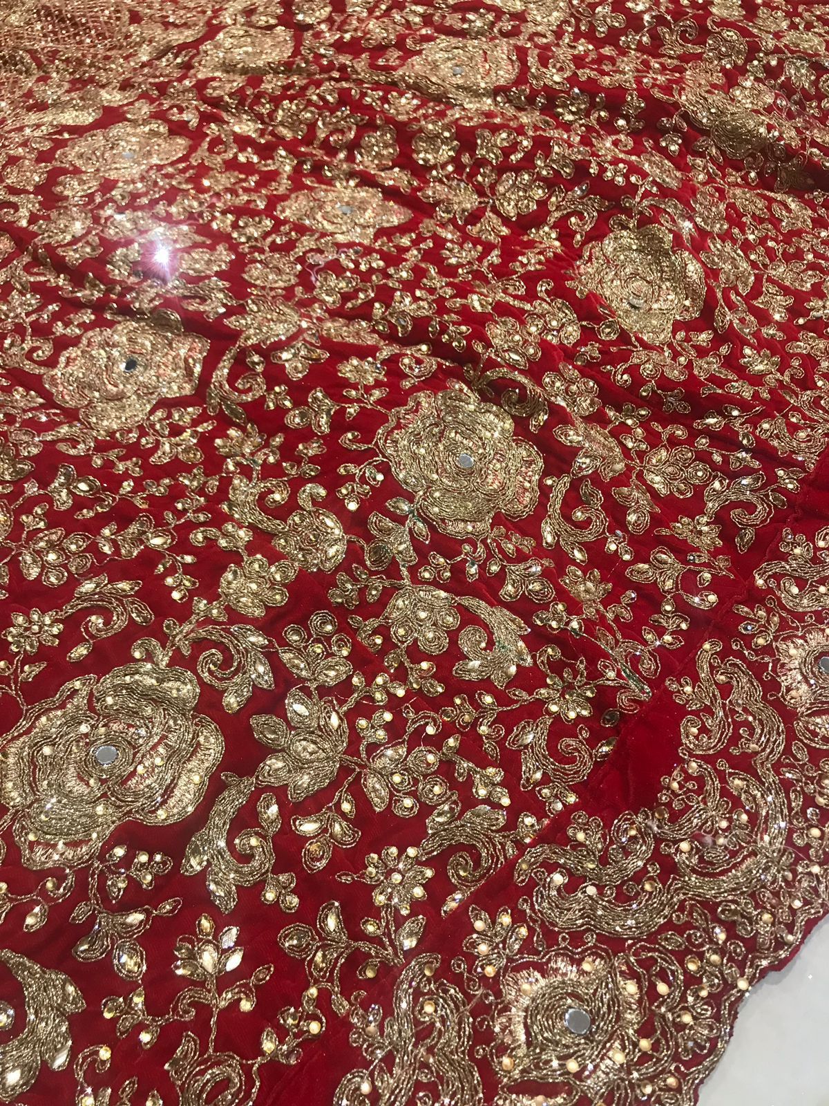 *🌷LEHENGA : Pure 9000 Velvette with Heavy CODING Embriodery Work,GLITTER zari work, with Grand GOLDEN stone work💎 & Golden Inner covering Patta *