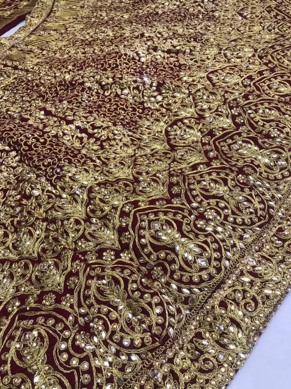 *🌷LEHENGA : Pure 9000 Velvette with Heavy CODING Embriodery Work,zari work,thread work with Grand GOLDEN stone work💎 & Golden Inner covering Patta *