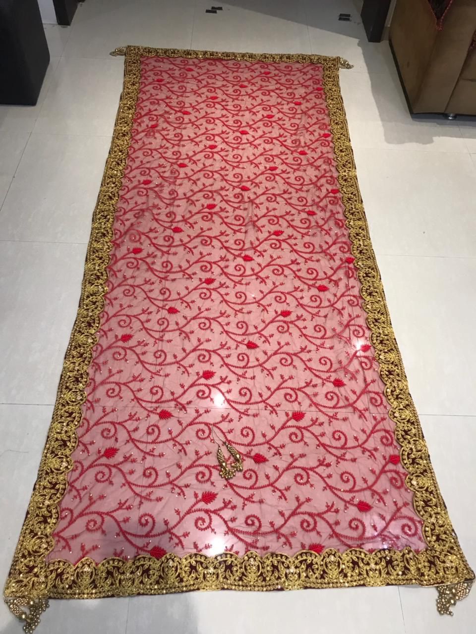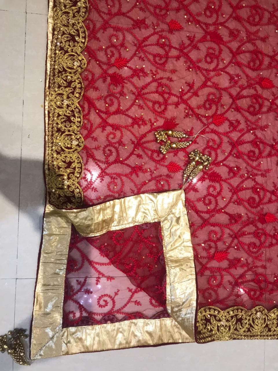 🌷Dupatta: Soft Mono Net 2.50mtr with coding embroidery work , Velvette Lace embroidery coding work,zari work,thread work ALL OVER,HEAVY GOLDEN stone WORK & four size grand heavy Exclusive JHUMKA 💎