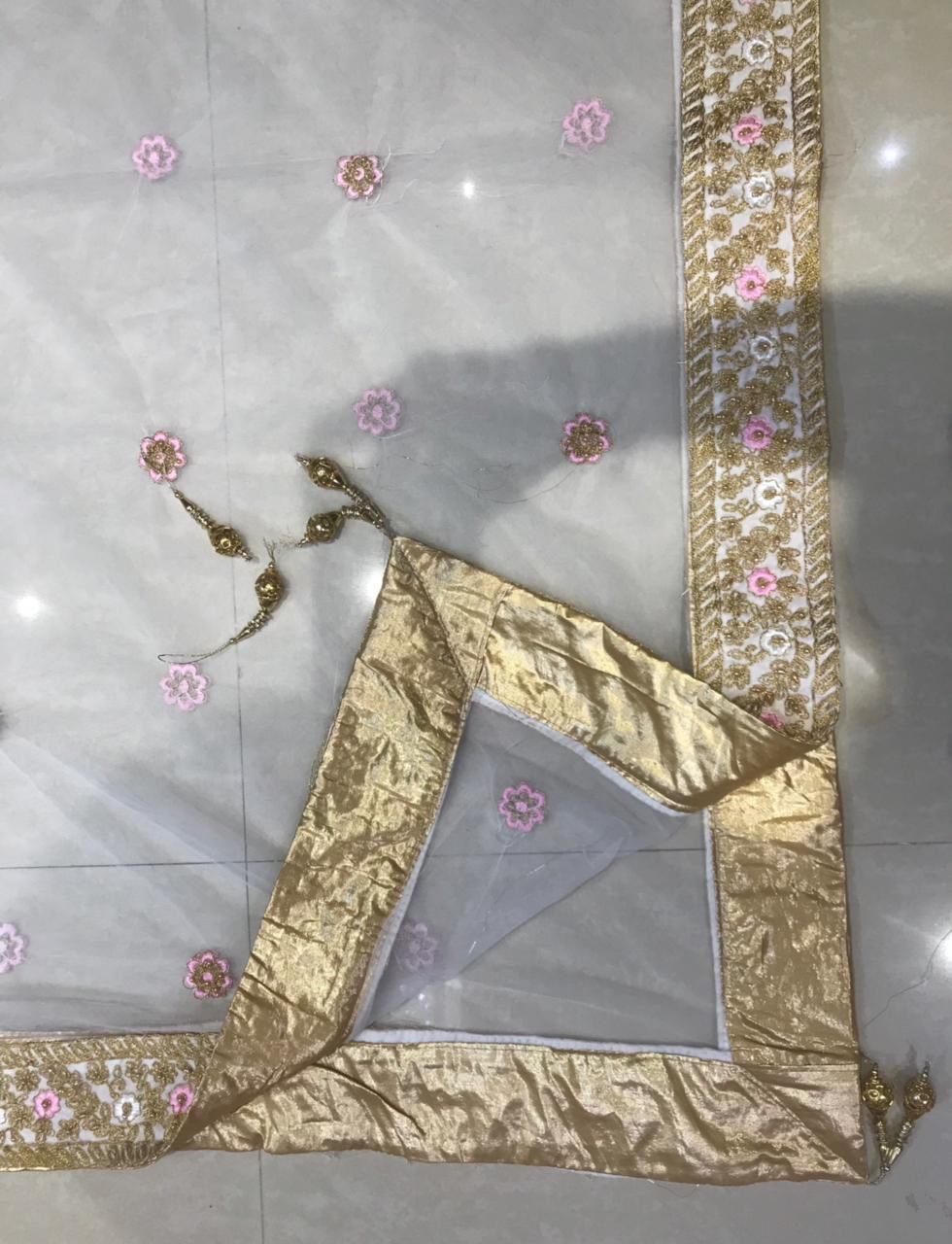 🌷Dupatta: Soft Mono Net 2.50mtr with coding embroidery work , Velvette Lace embroidery coding work,zari work,thread work Border & HEAVY Ceramic stone WORK & four size grand heavy RUDRAKSH JHUMKA 💎