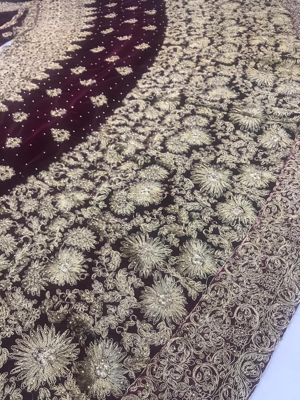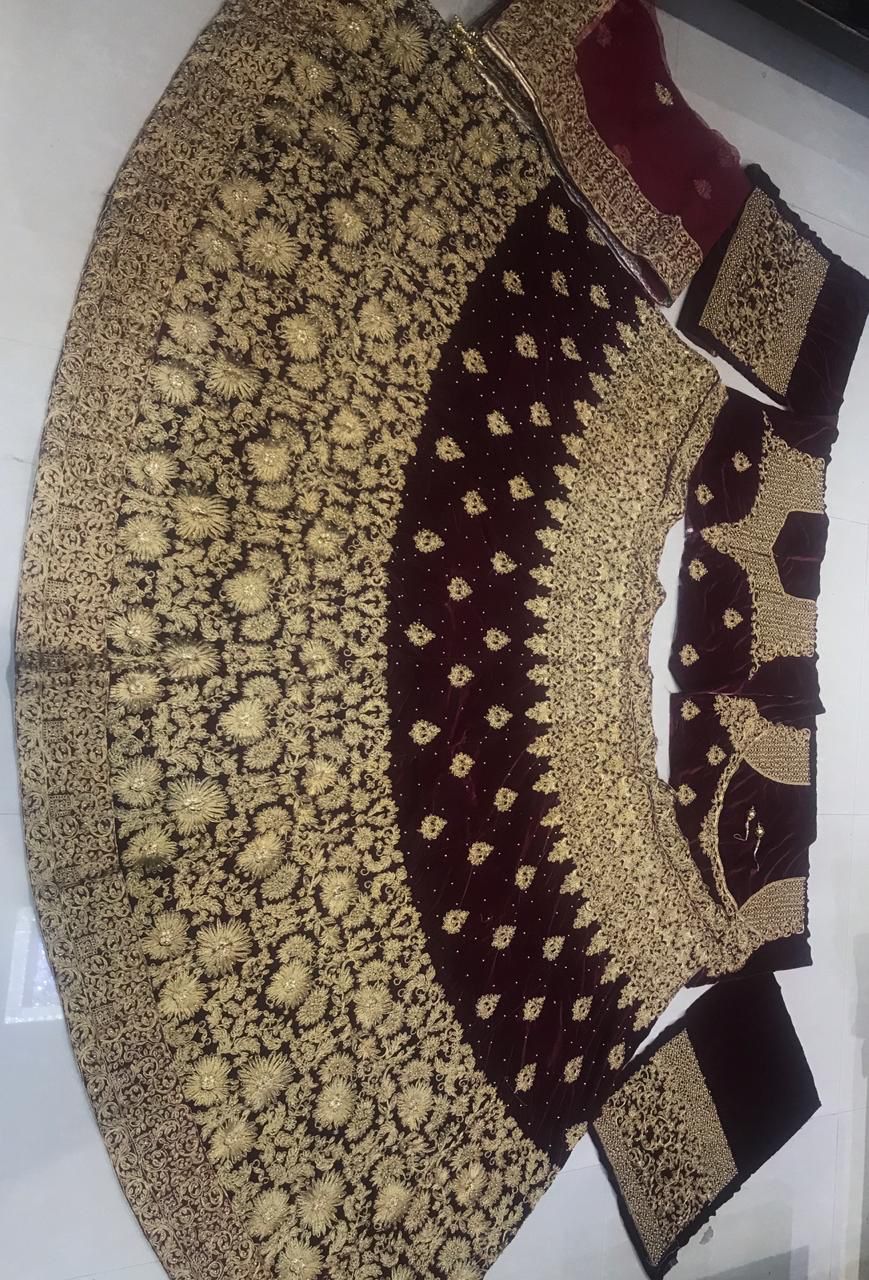 *🌷LEHENGA : Pure 9000 Velvette with Heavy Embriodery Work, with AMERICAN STONE WORK 💎 & Golden Inner covering Patta *