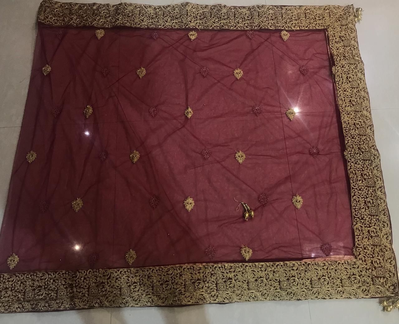 🌷Dupatta: PURE mono net 2.50mtr with embroidery work , Velvette Lace embroidery work Border & AMERICAN STONE work & four size grand heavy RUDRAKSH jhumka 💎