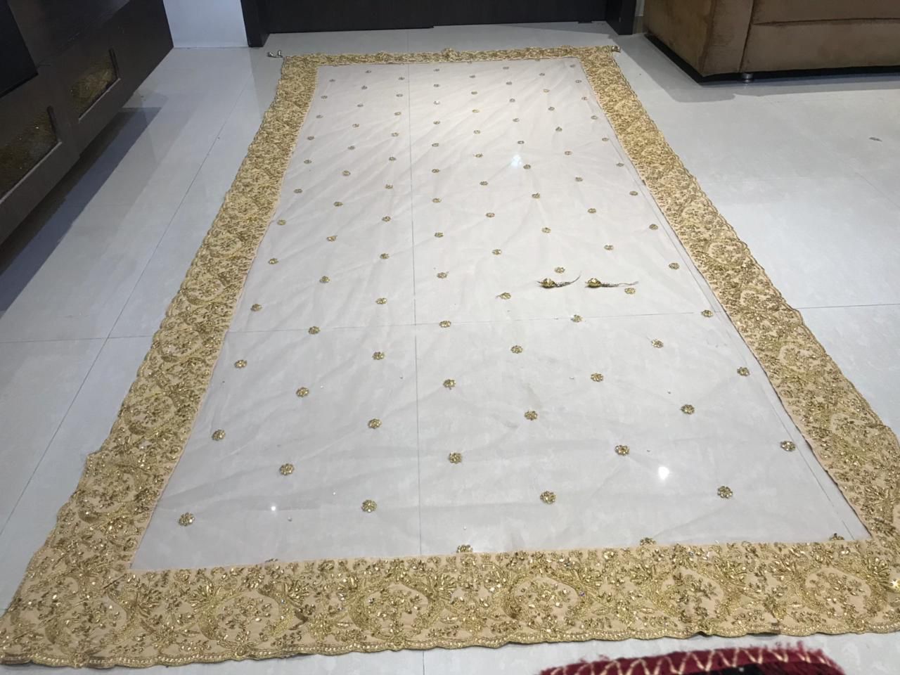 🌷Dupatta: Soft Mono Net 2.50mtr with coding embroidery work , Velvette Lace embroidery coding work,zari work,thread work Border & HEAVY GOLDEN stone WORK & four size grand heavy RUDRAKSH JHUMKA 💎