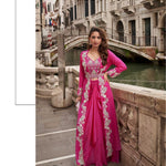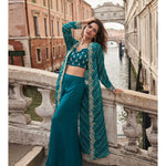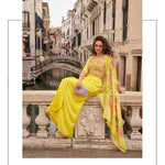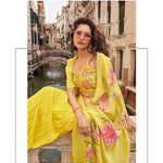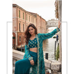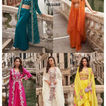 FABRIC - PREMIUM REAL CHINON SILK / VISCOS JACQUARD SILK ( TREDY FESTIVE LOOK FRONT AND BACK EMBROIDERED SHRUG WITH EMBROIDERED BLOUSE ON HAND EMBELLISHED MIRROR WORK WITH STYLIST PLAZZO )