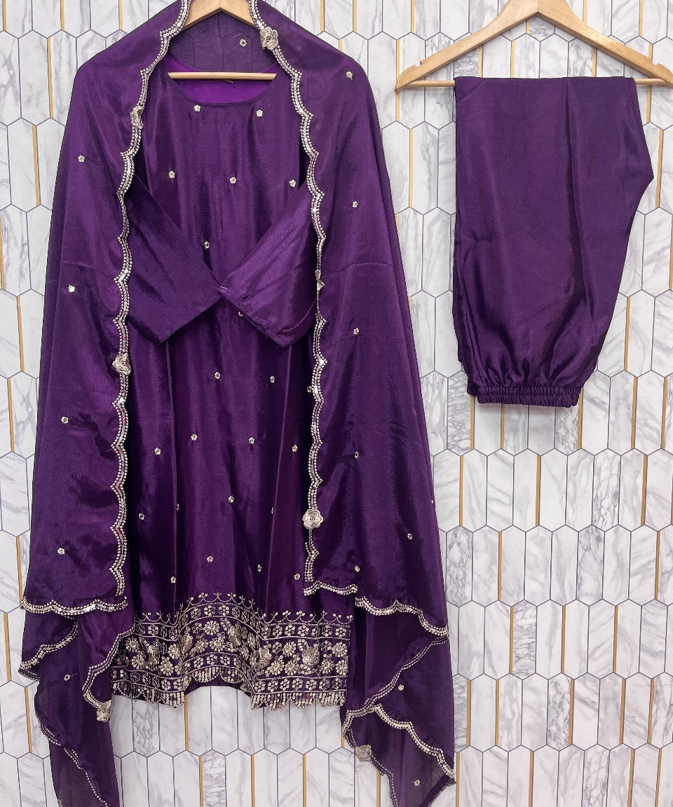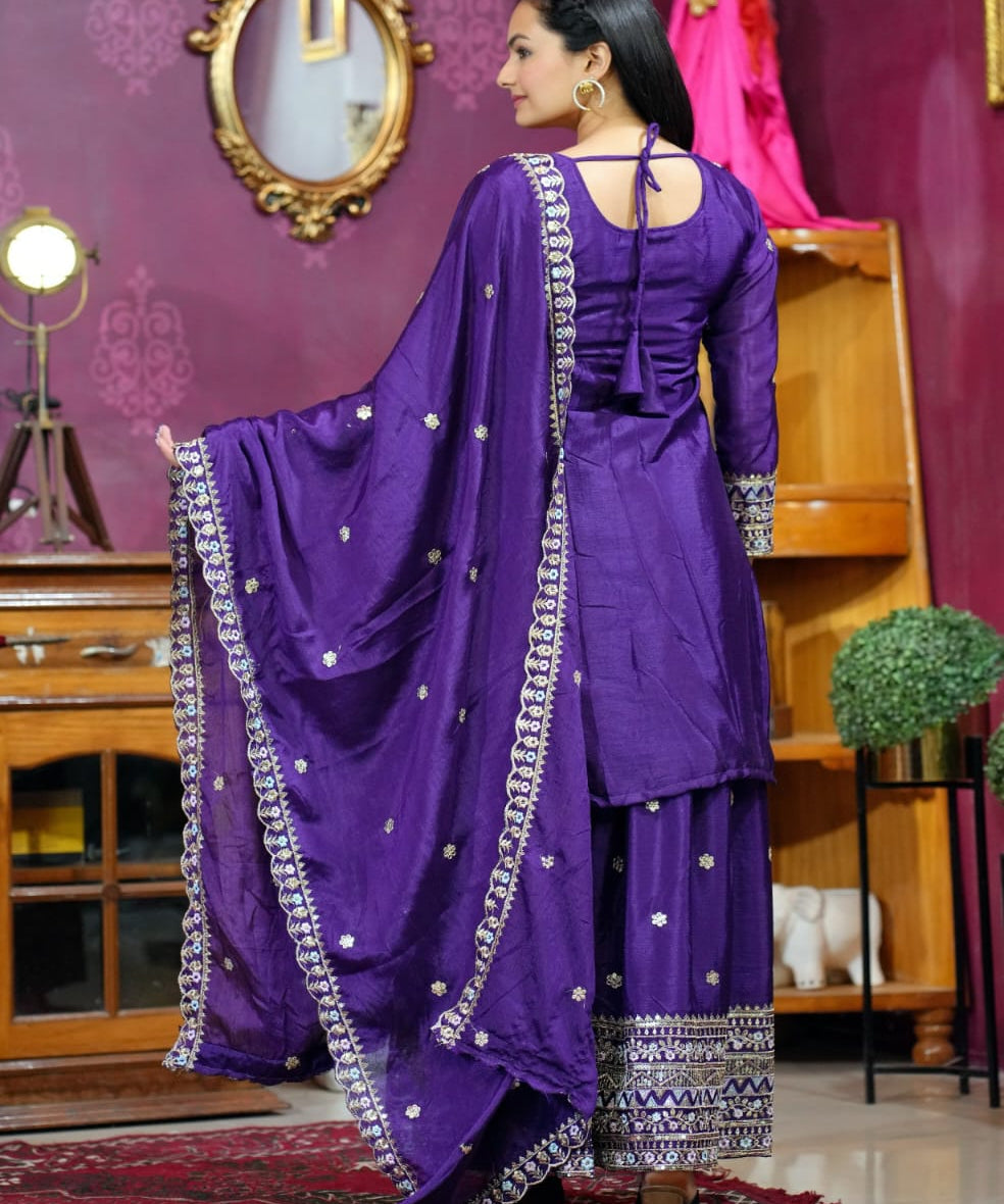 Violet Designer Embroidered Suit