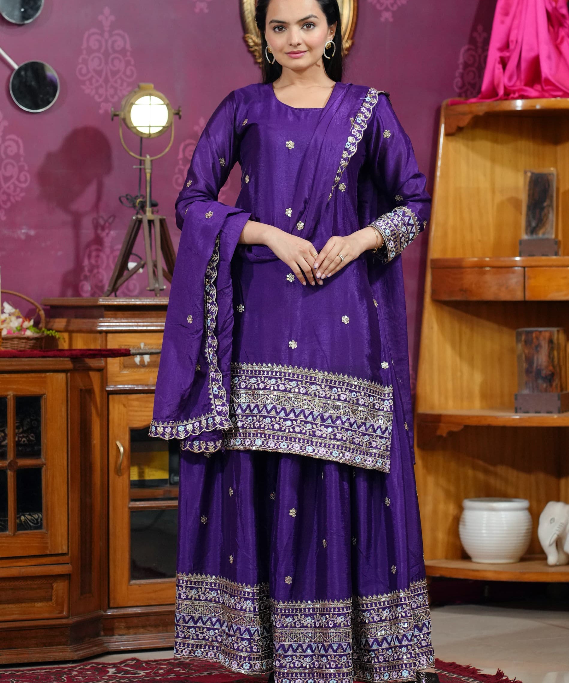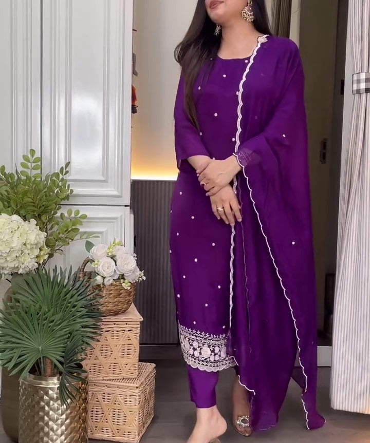Violet Classy Pure Chinon Suit