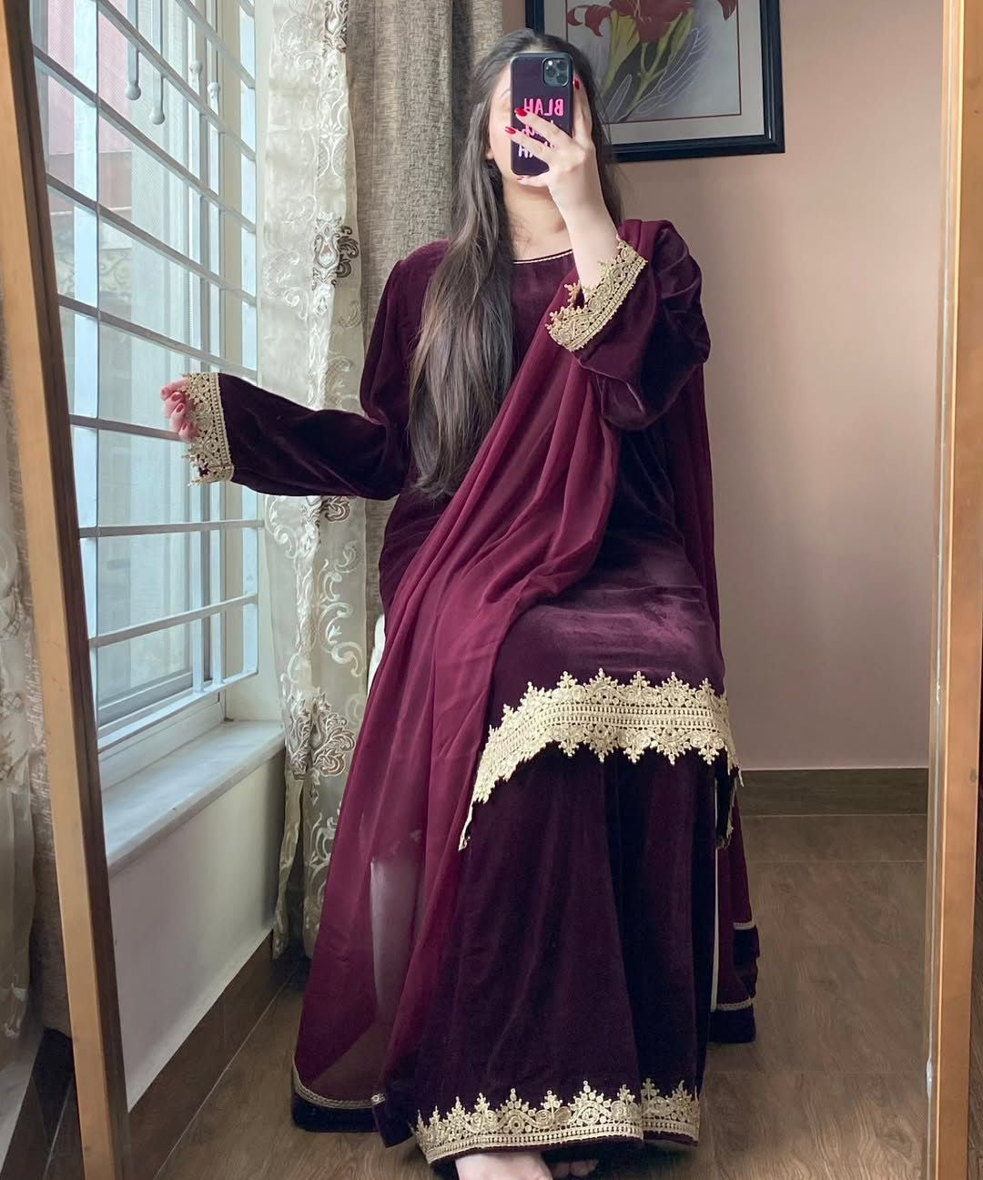 VELVET DESIGNER WEAR KURTA PLAZZO