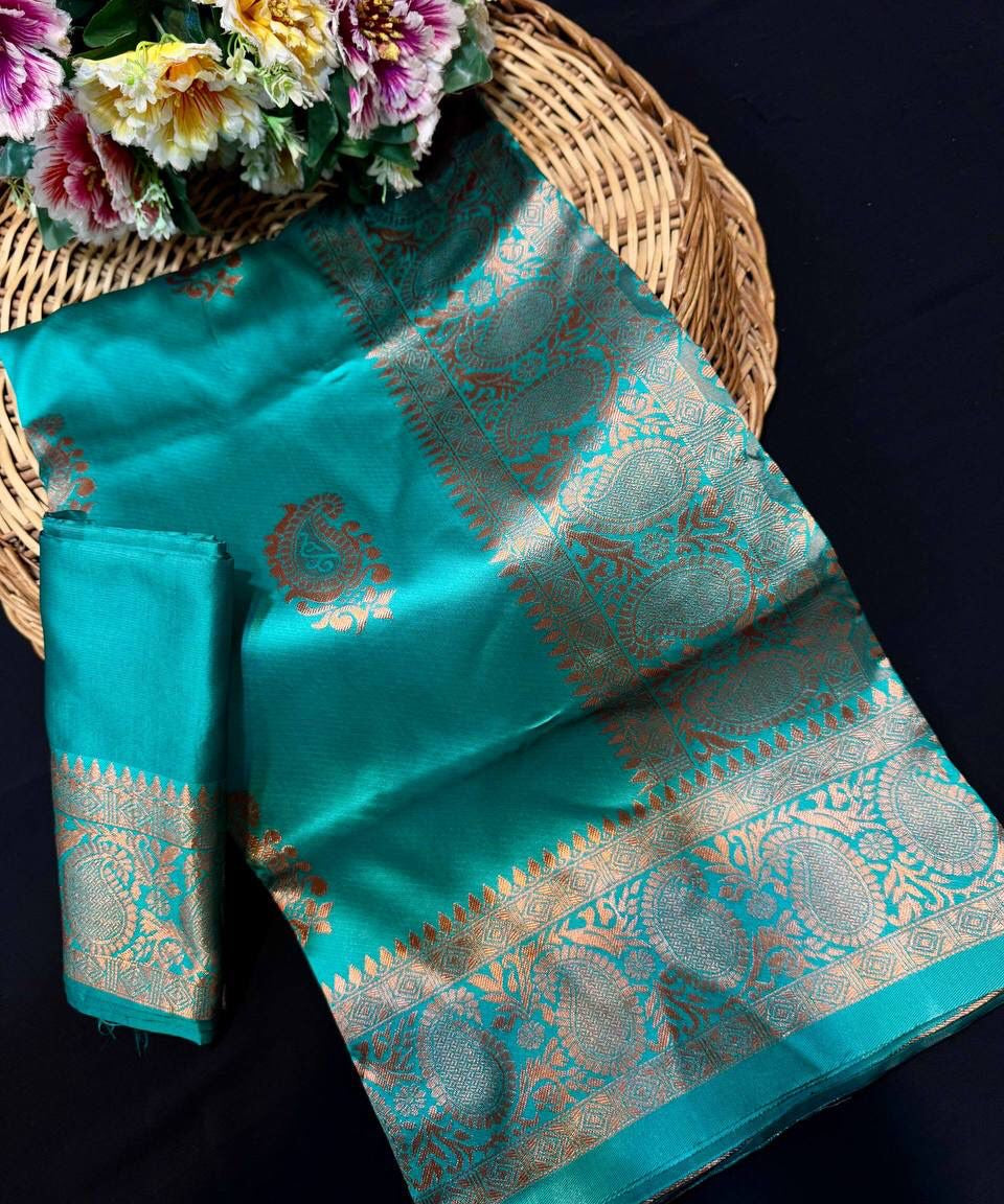 Turquoise Soft Lichi Silk Saree