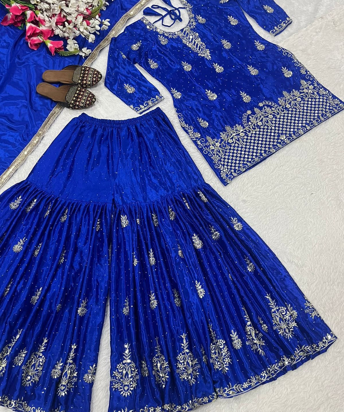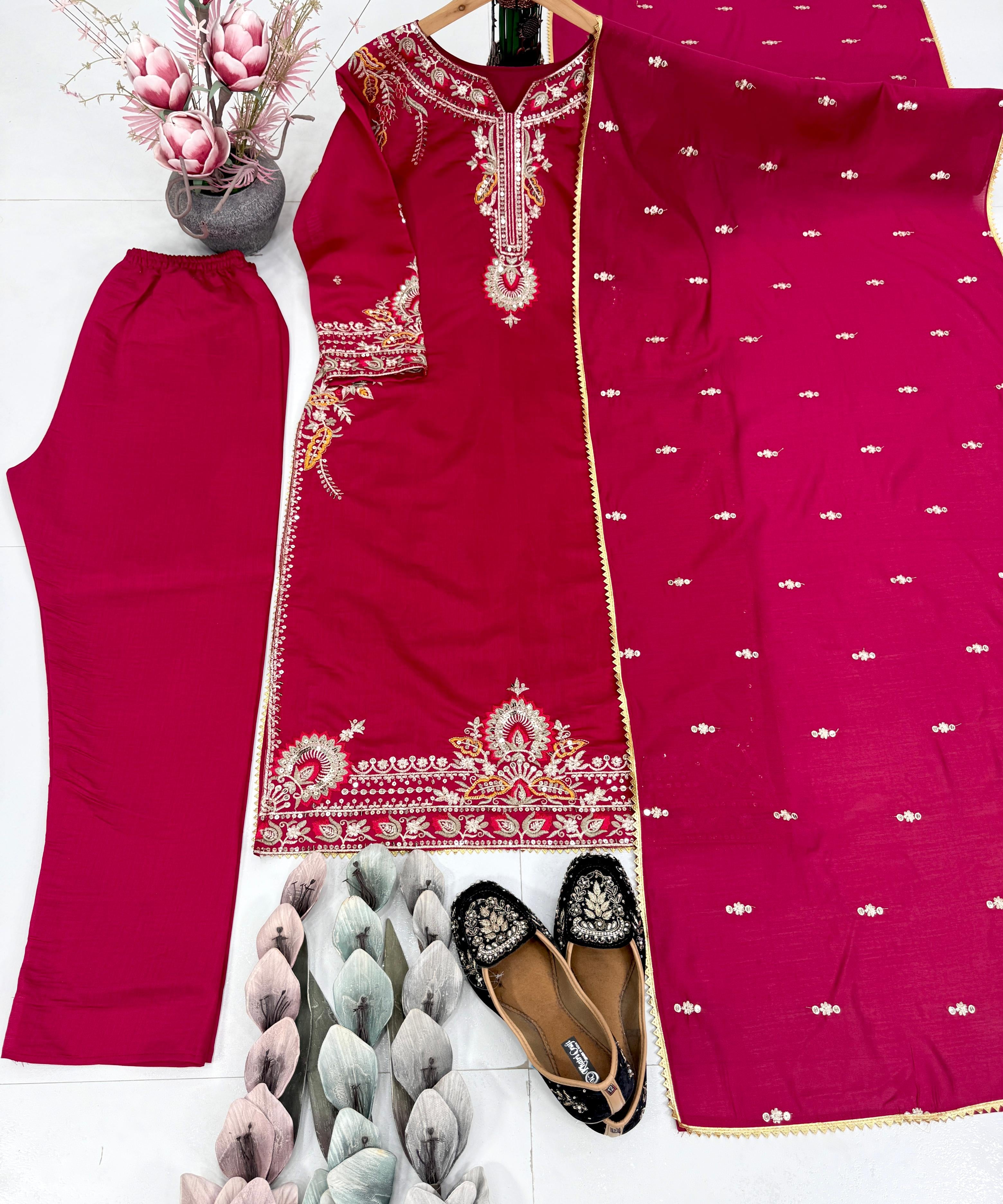Trendy Silk Embroidered Suit