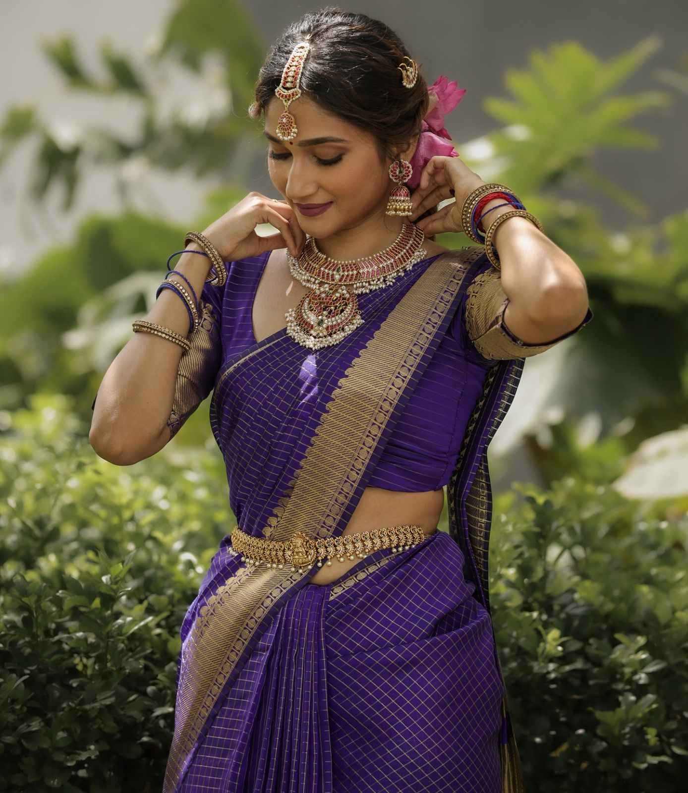 Violet Art Silk Jacquard Saree