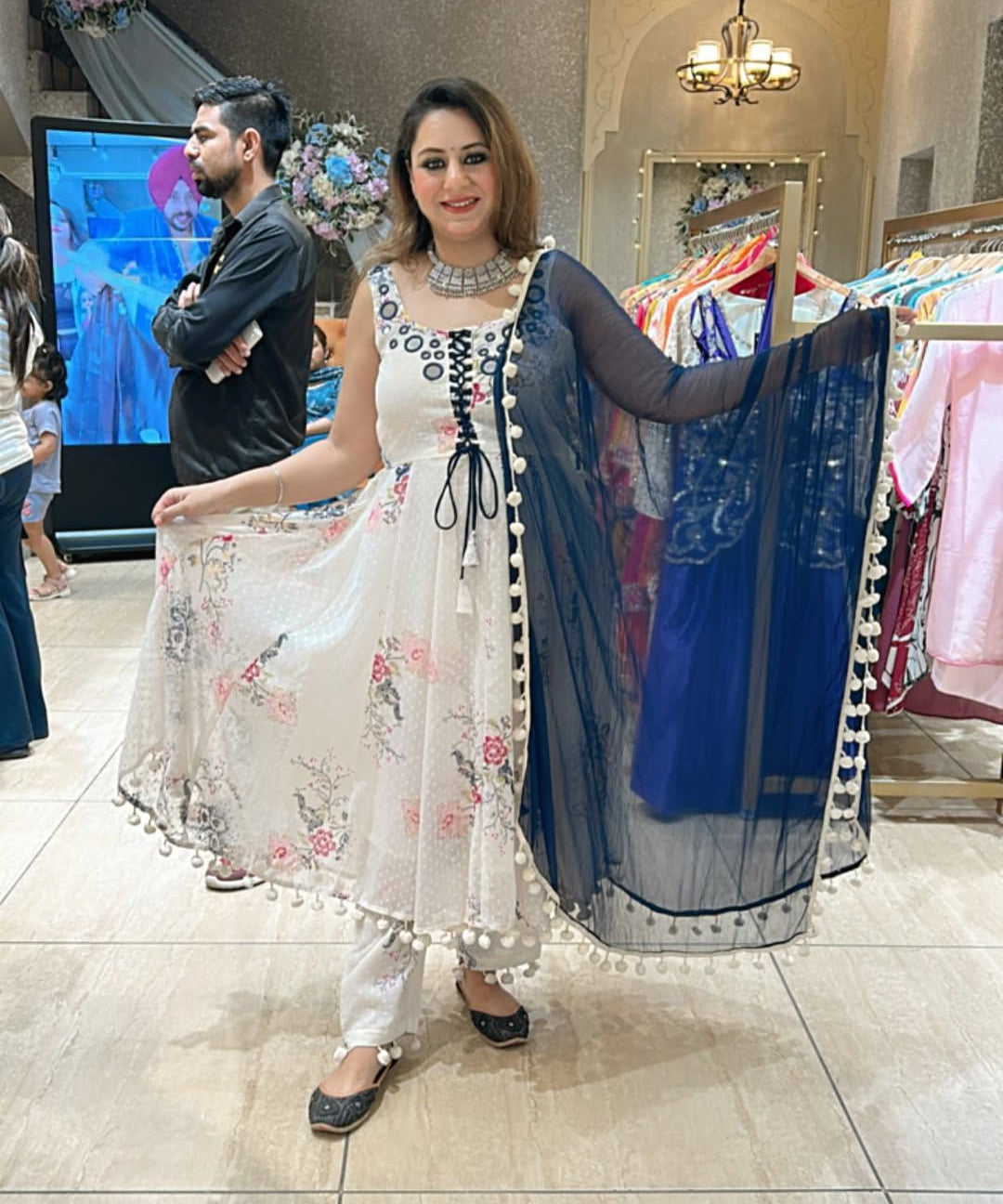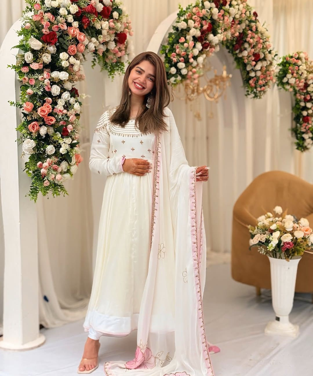 White Chikankari Anarkali Suit