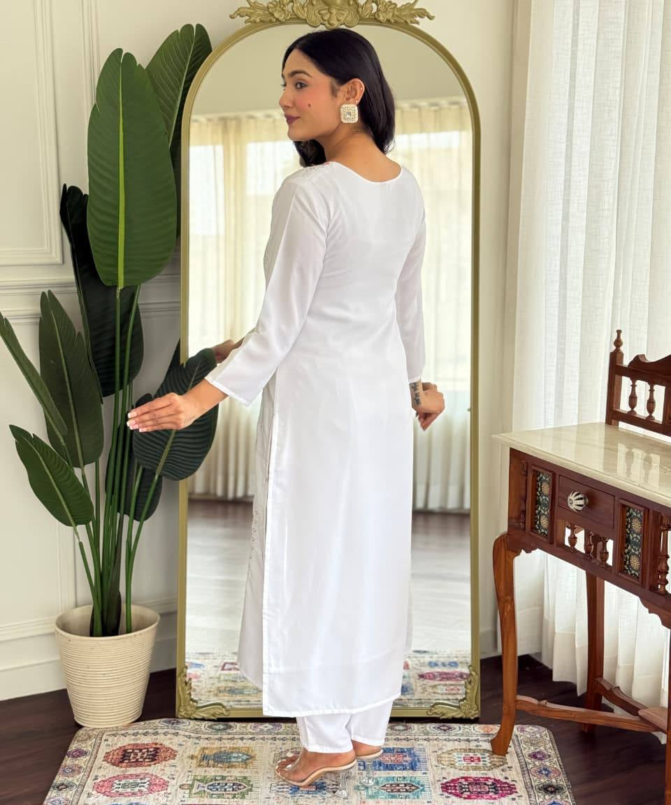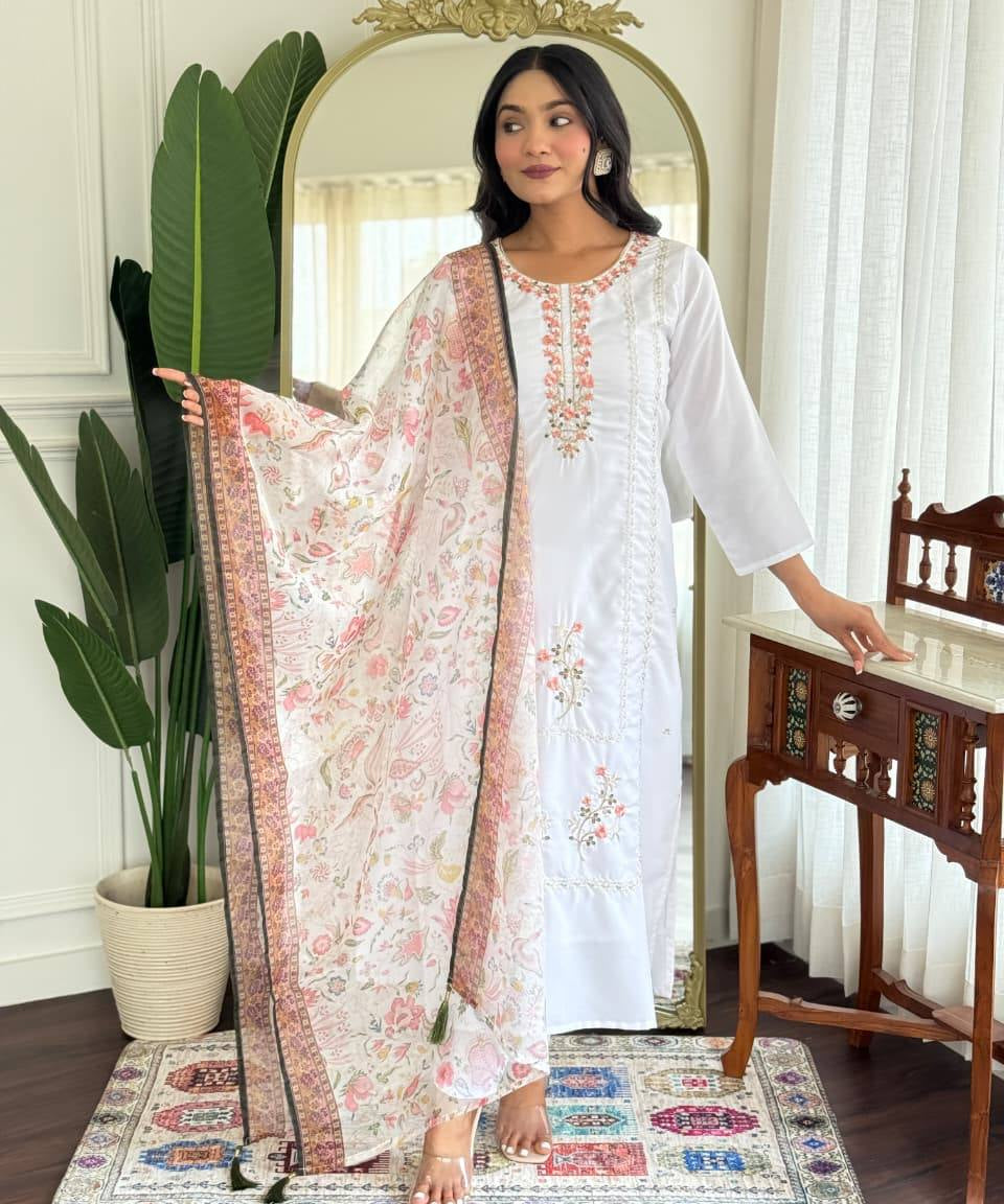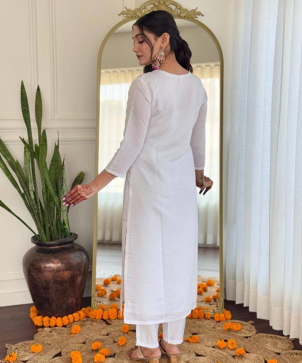 White Elegance Embroidered Suit