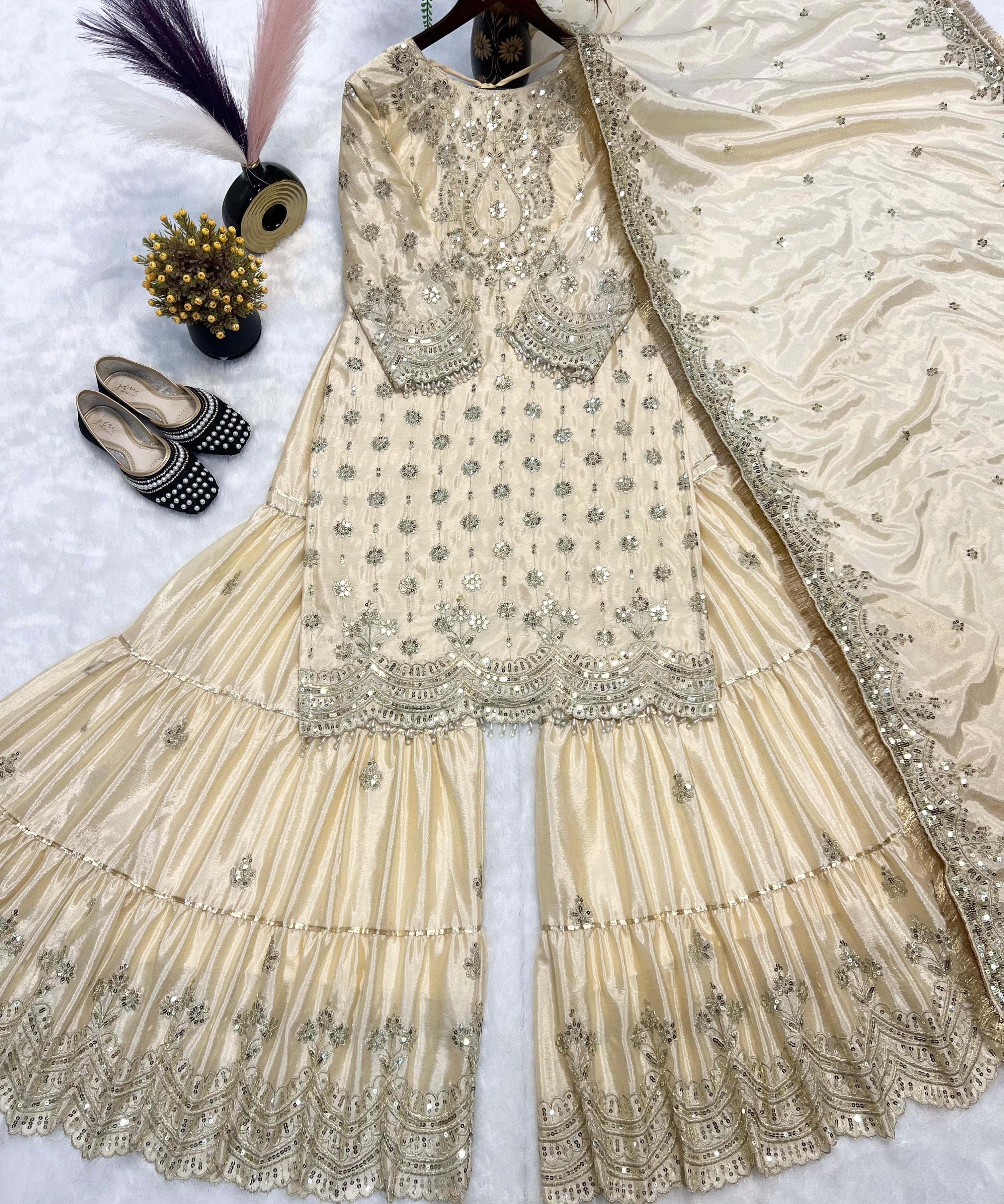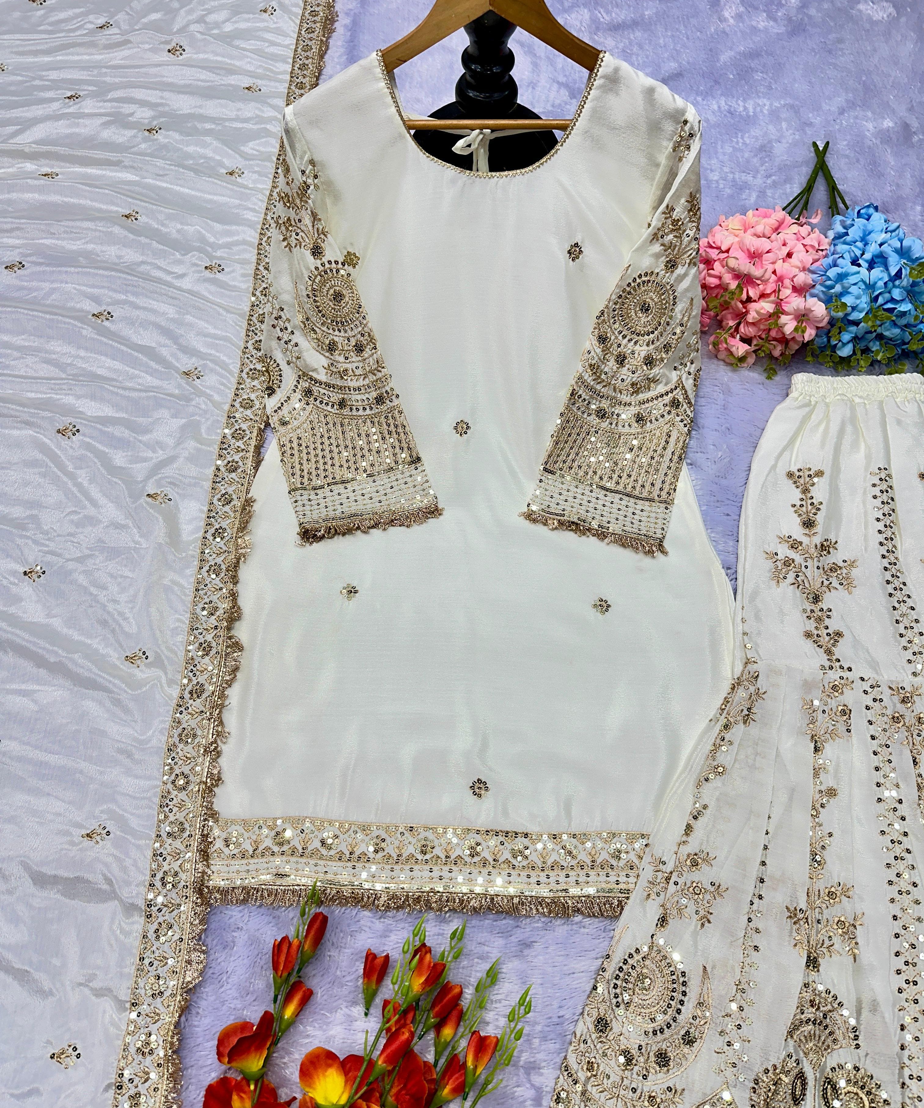 White Heavy Top Sharara Collection