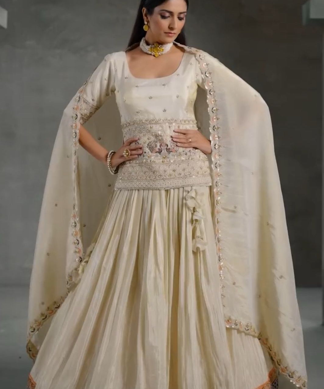 White Bridal Embroidered Lehenga