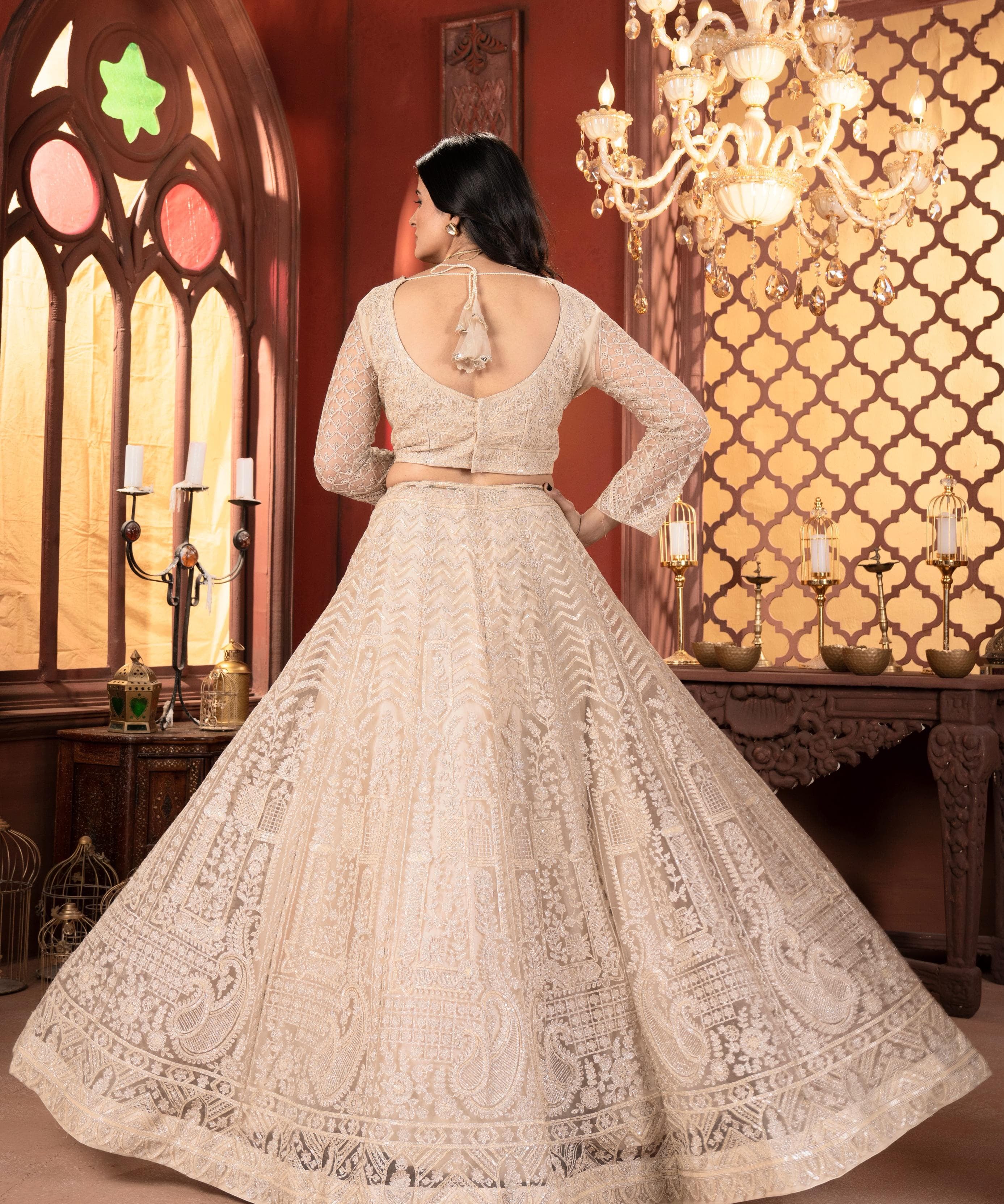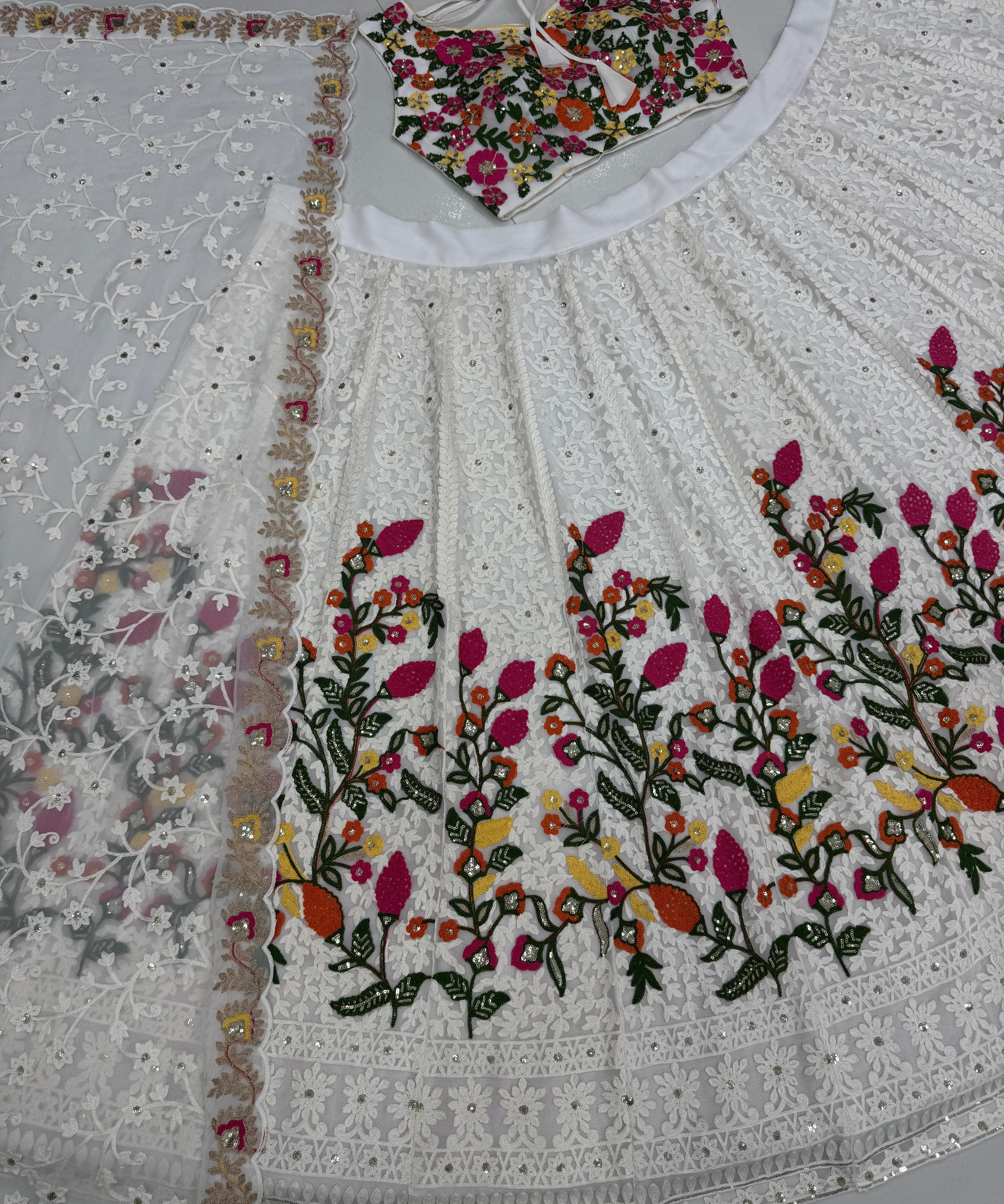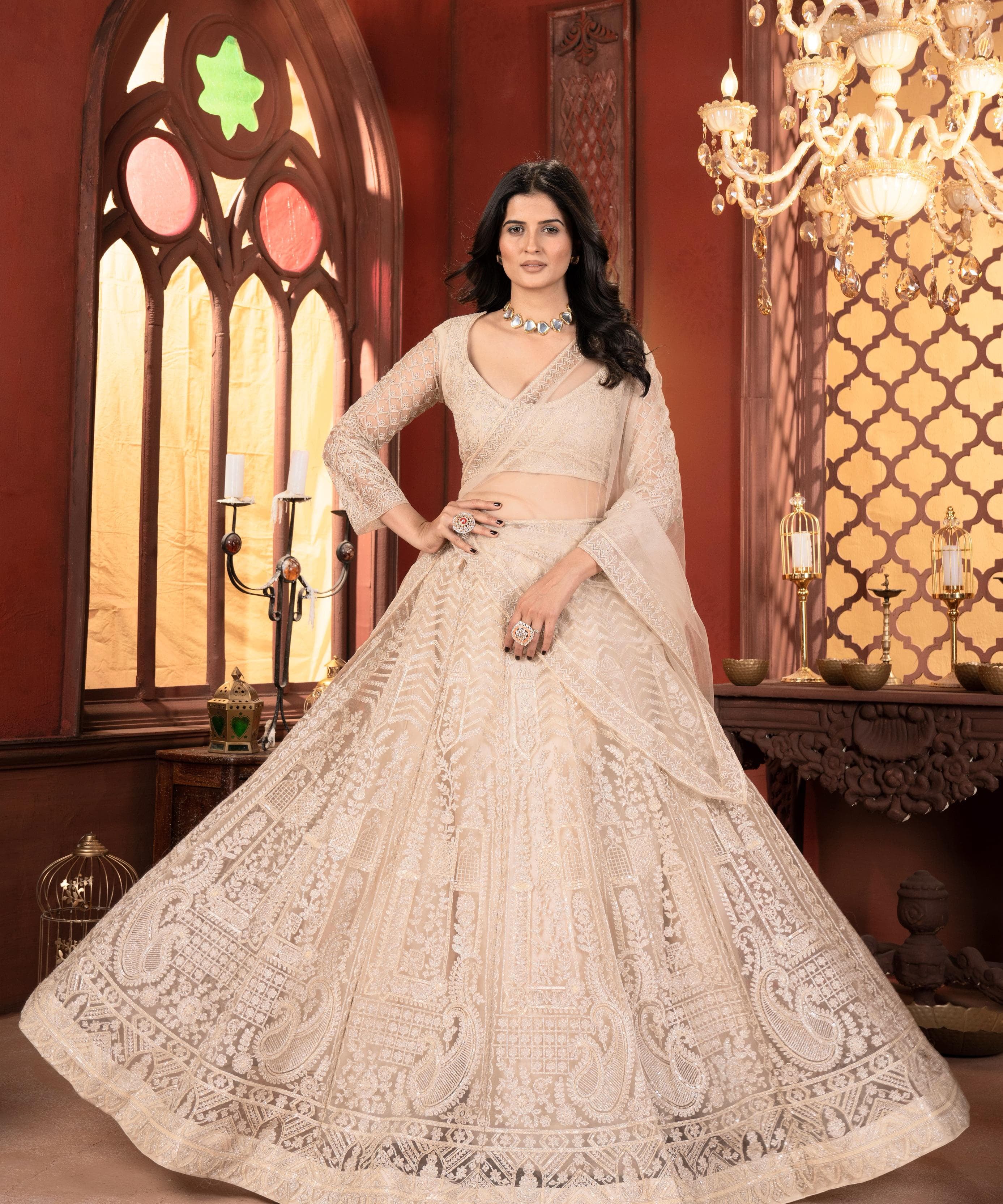 White Chinon Festive Lehenga