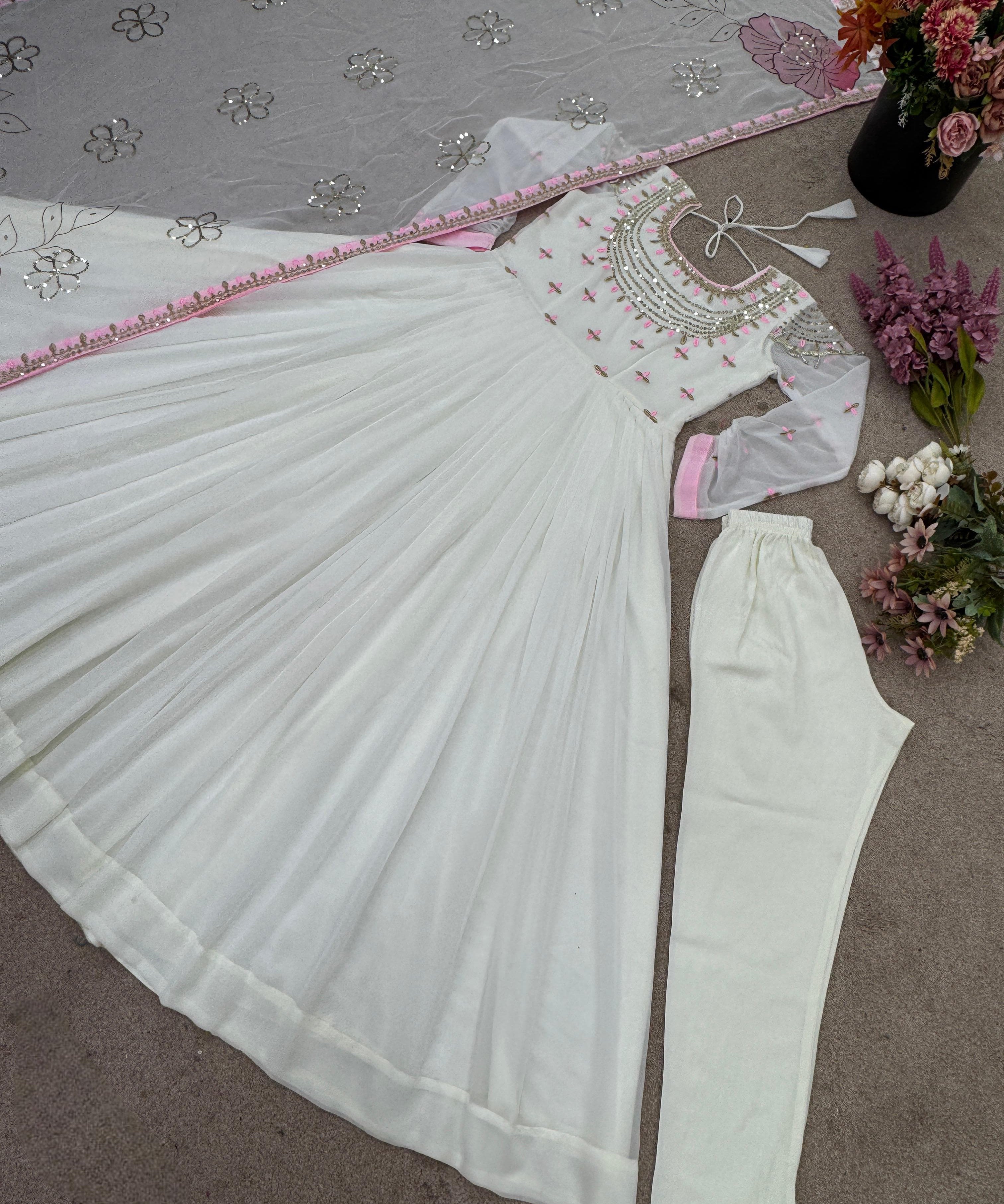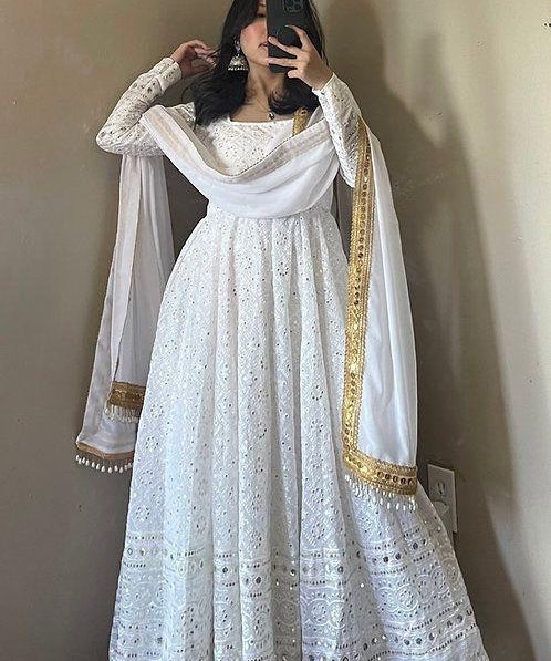 White Heavy Georgette Anarkali Gown