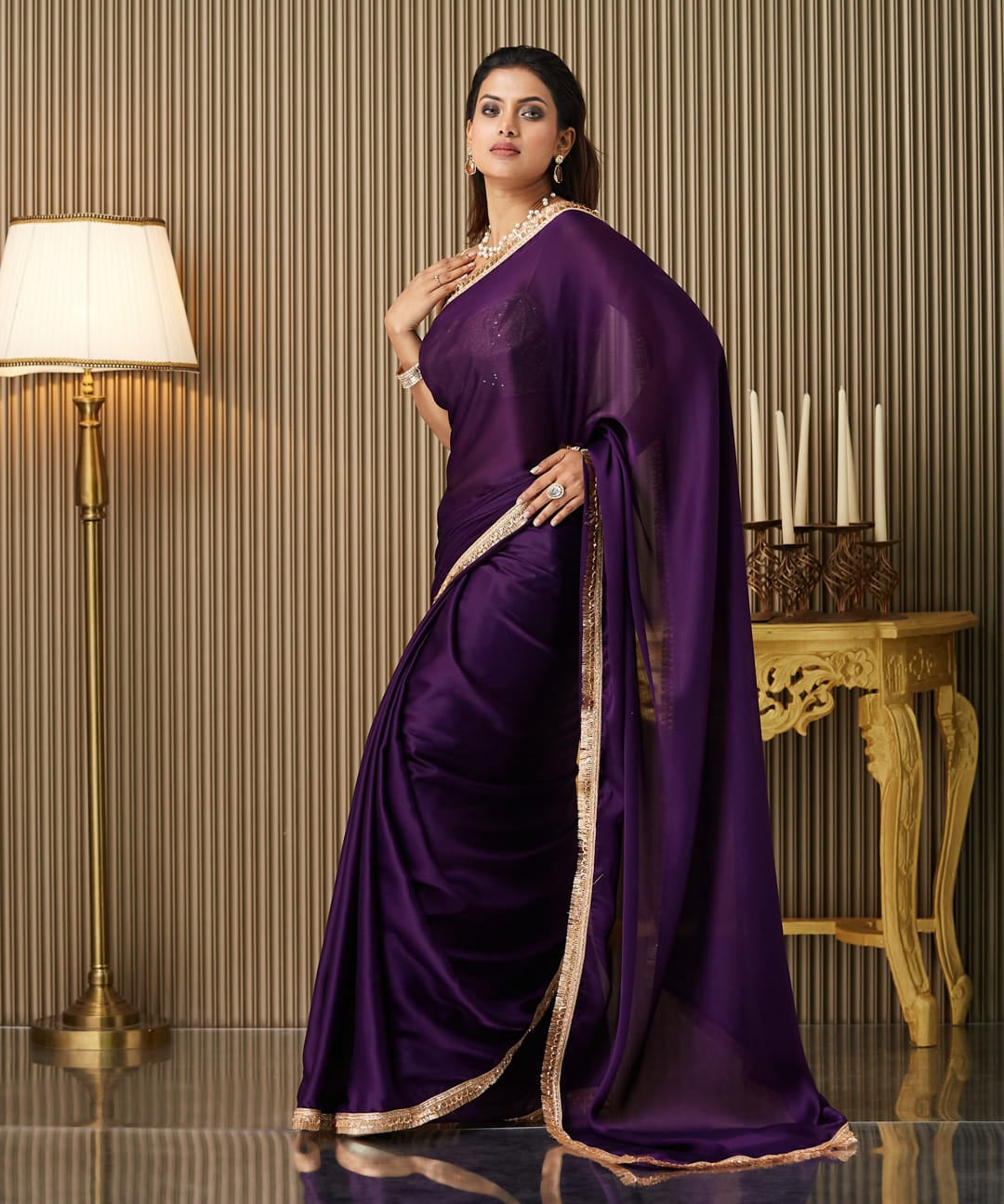Wine Designer Solid Satin Saree