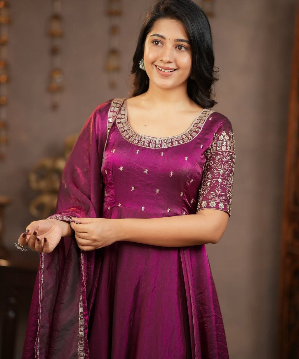 Wine Classy Silk Anarkali Gown