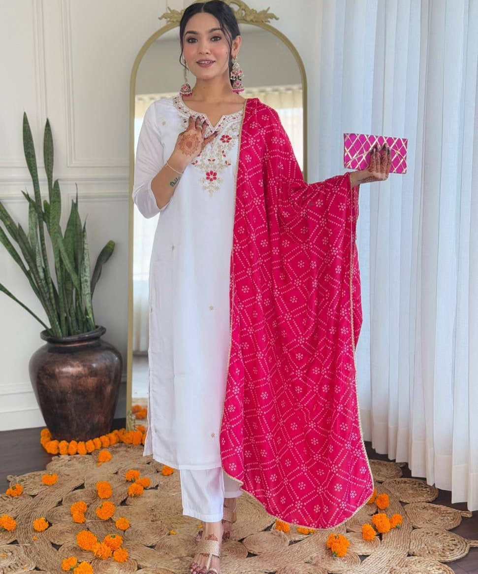 White Designer Silk Straight Suit