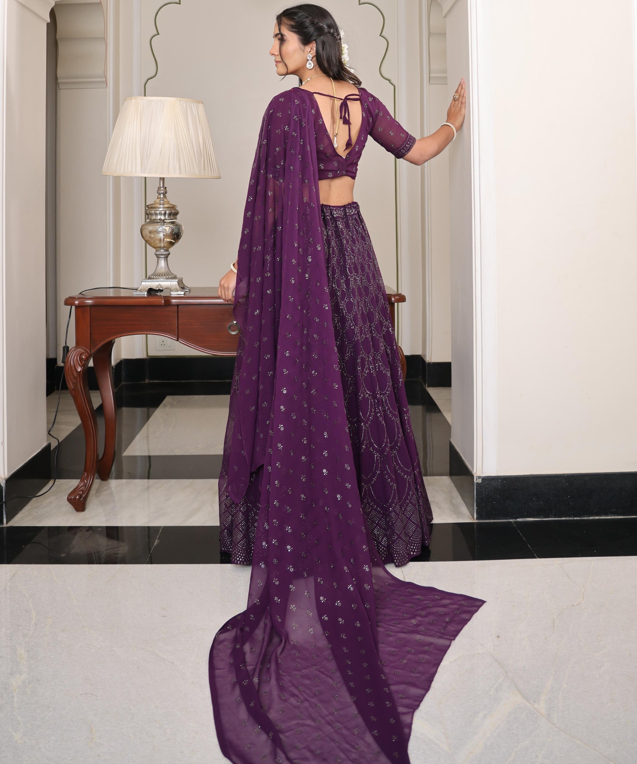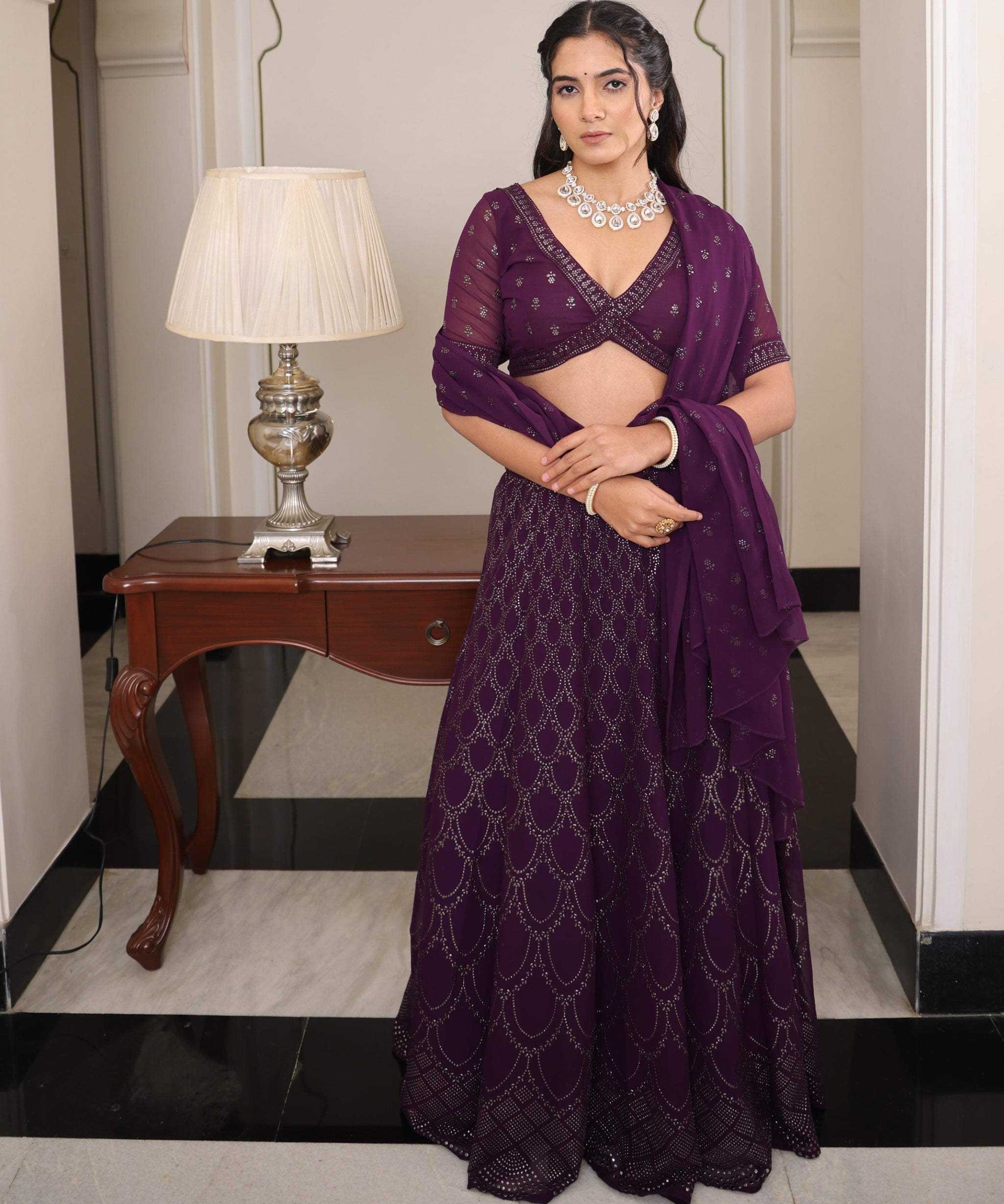 Wine Designer Georgette Lehenga