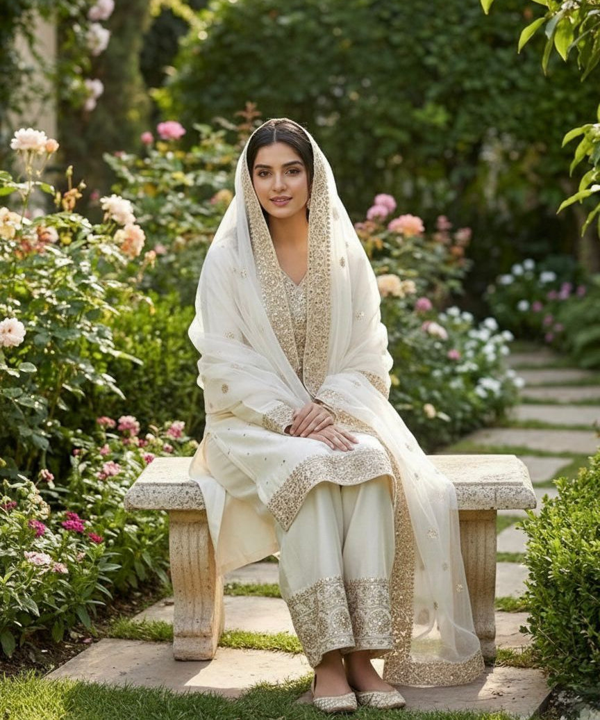 White Classy Heavy Pakistani Suit