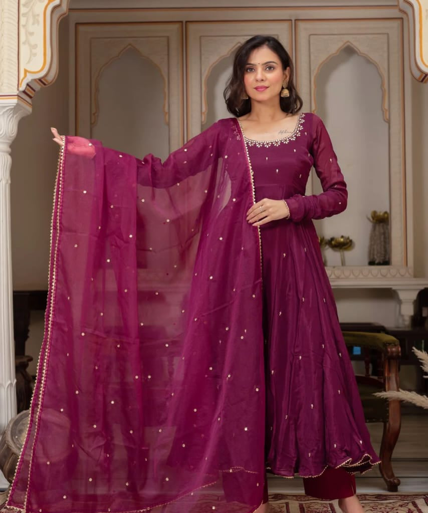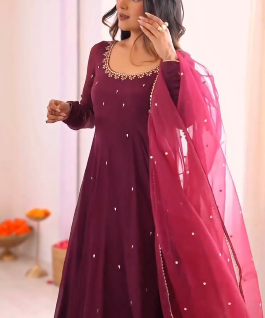 Wine Ethnic Georgette Anarkali Gown