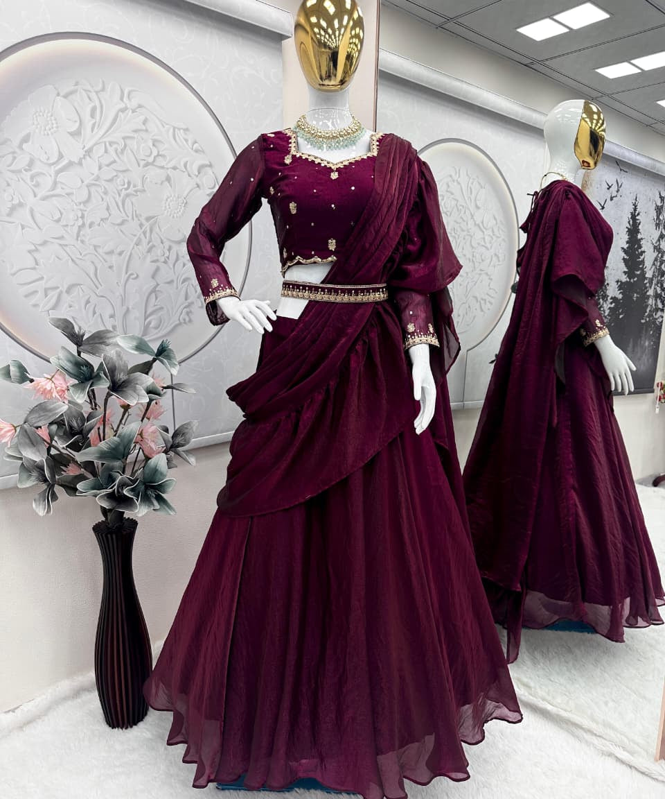 Wine Designer Stylish Silk Lehenga