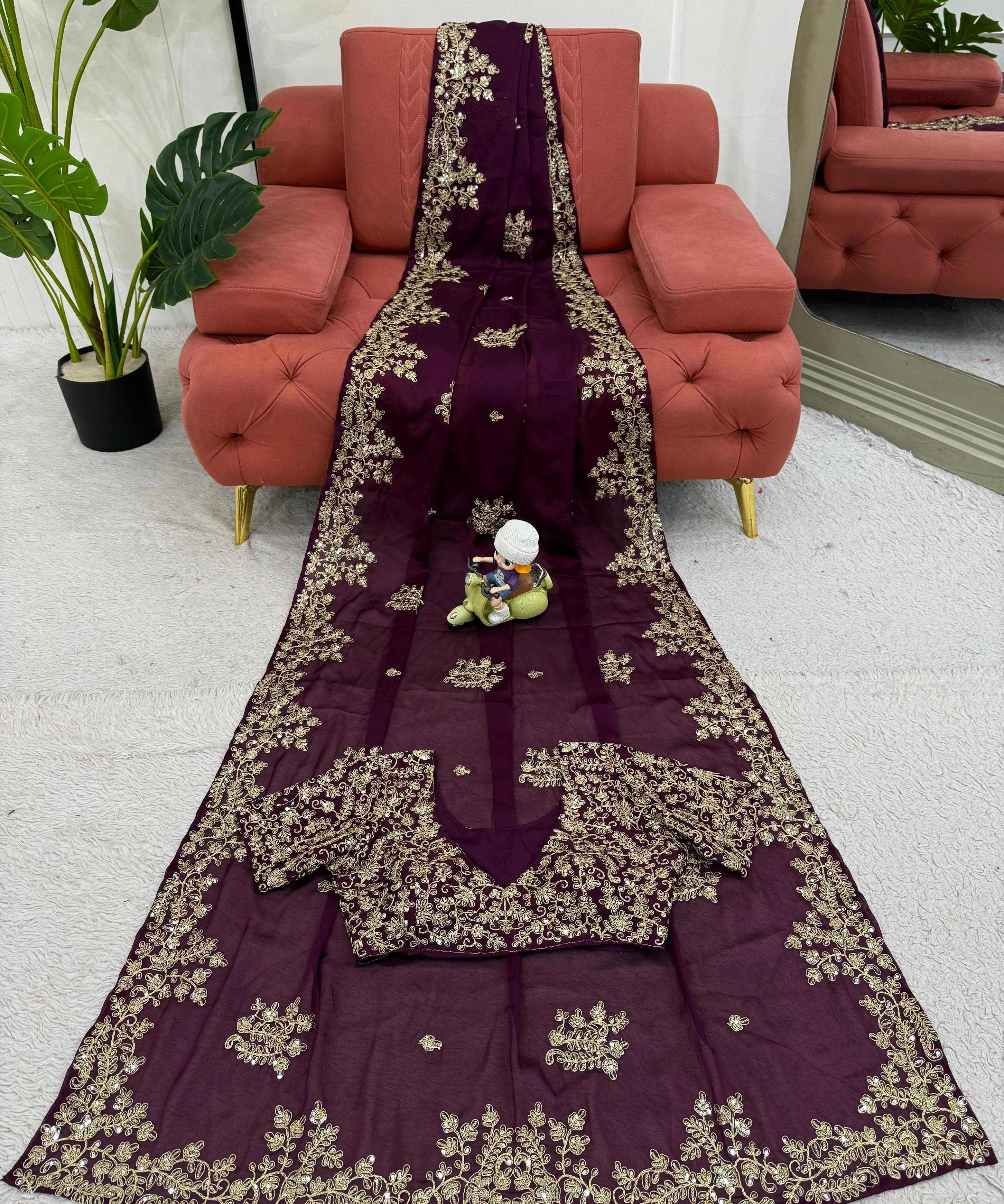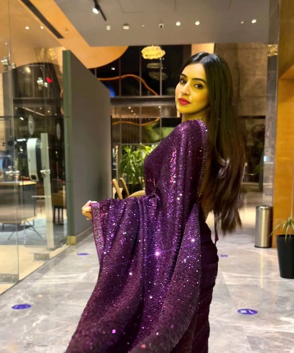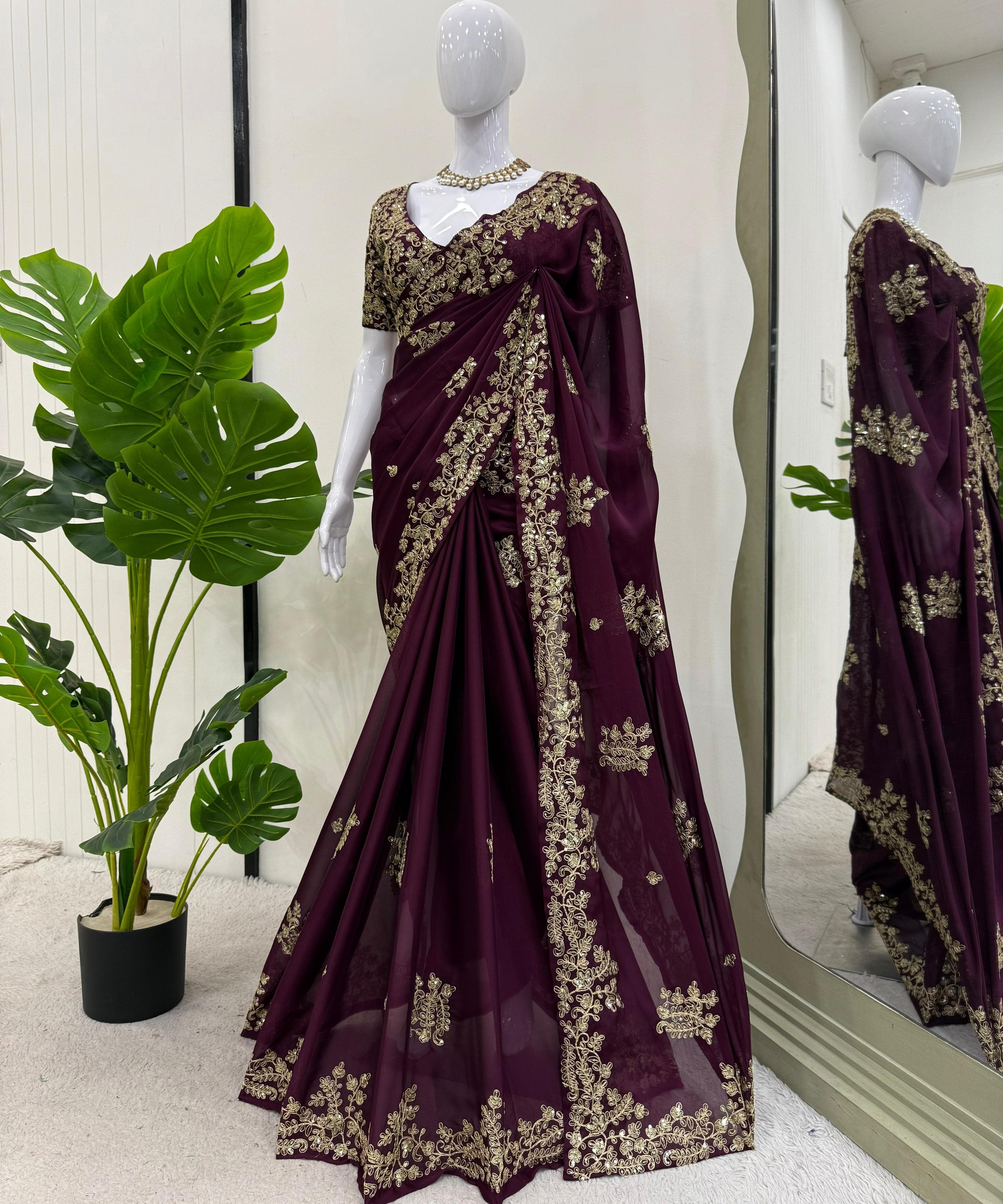 Wine Lavish Sequence Saree