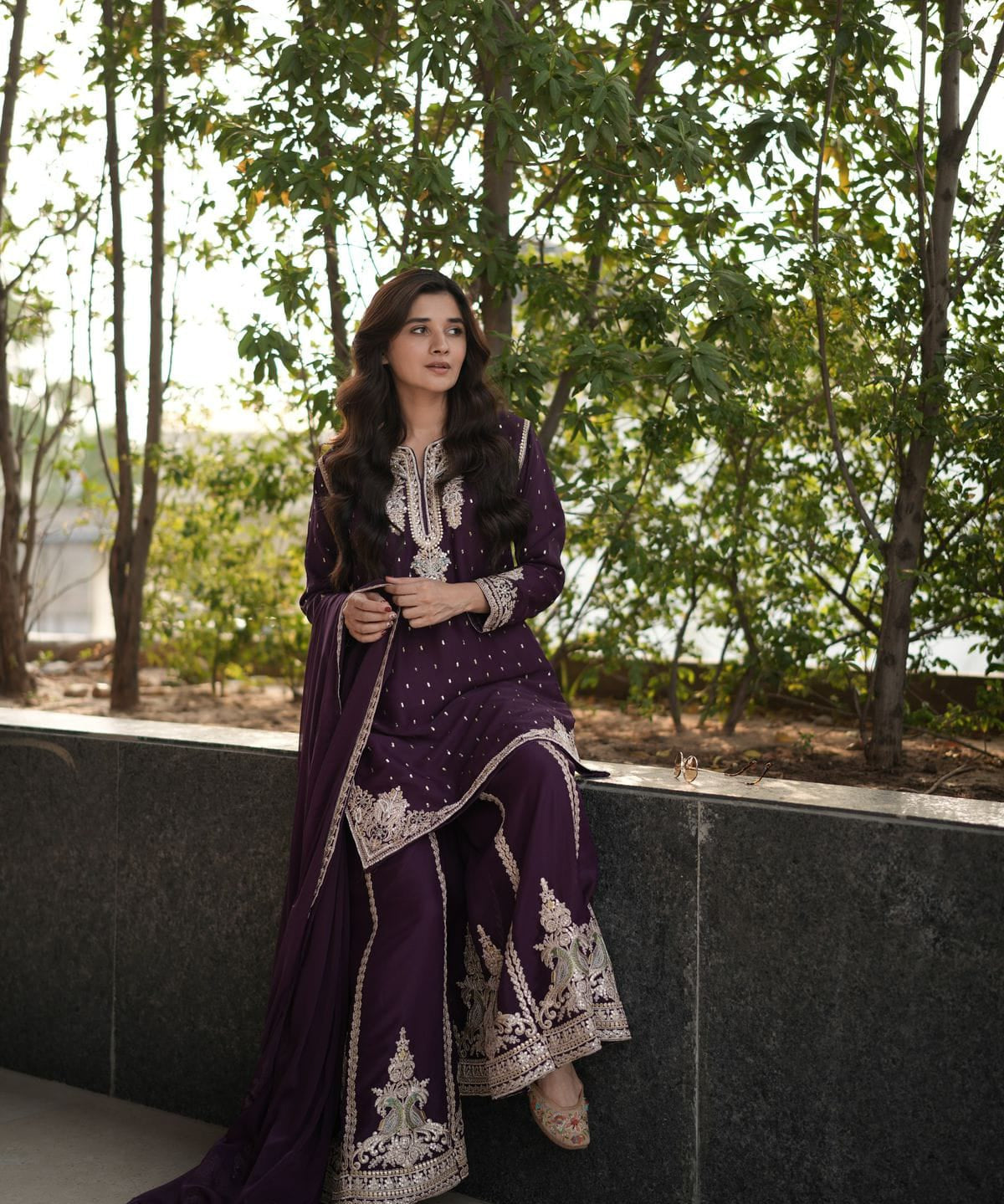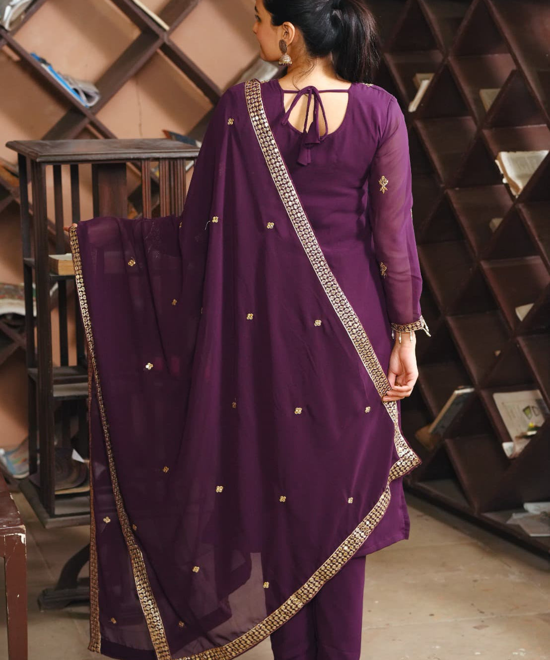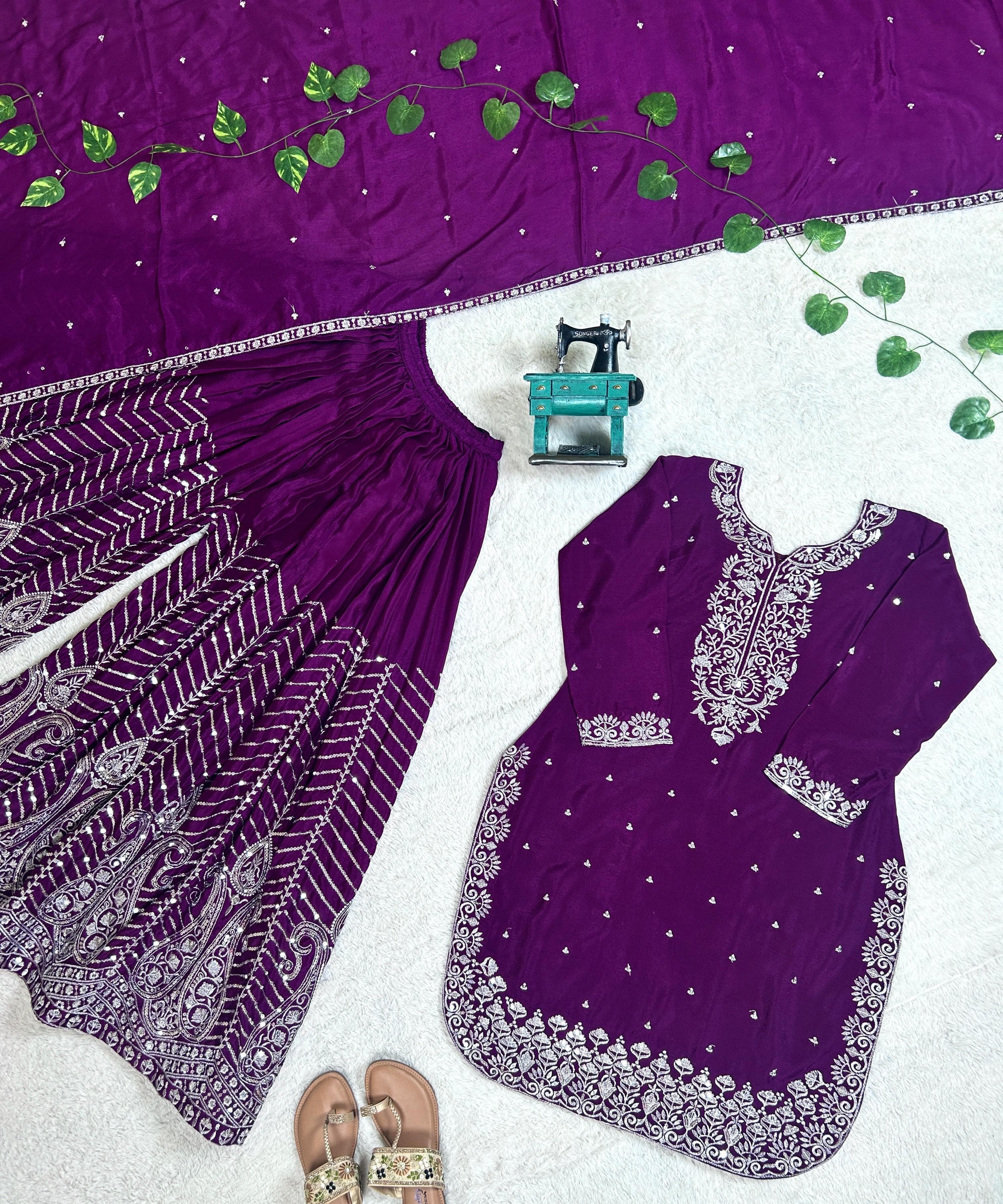 Wine Elegance Modern Suit Sharara