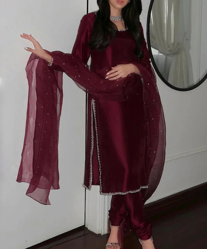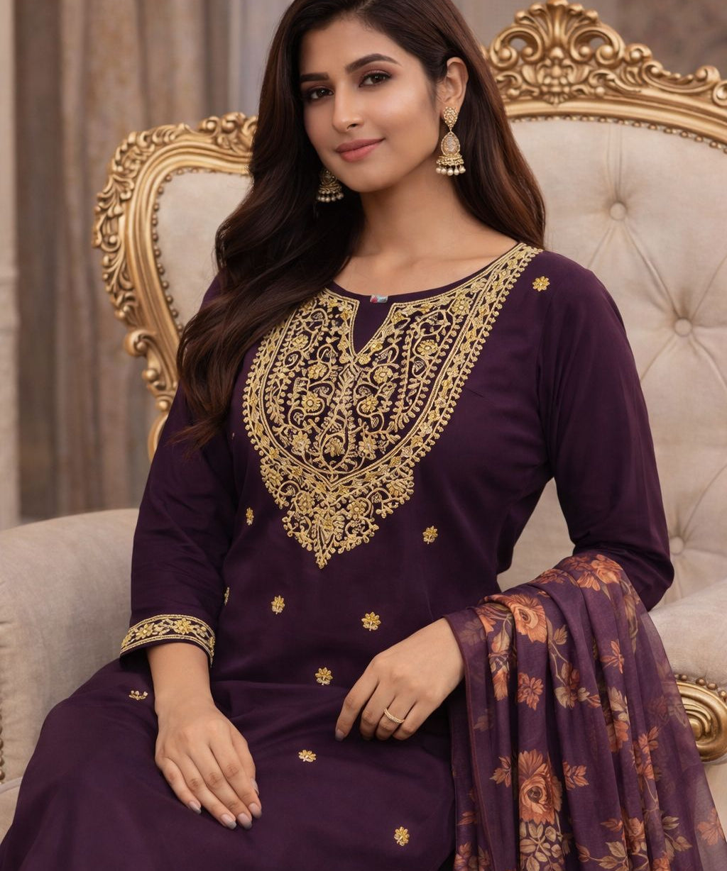 Wine Heavy Viscose Straight Suit