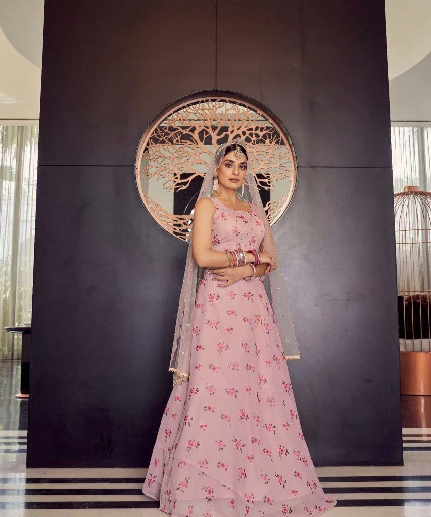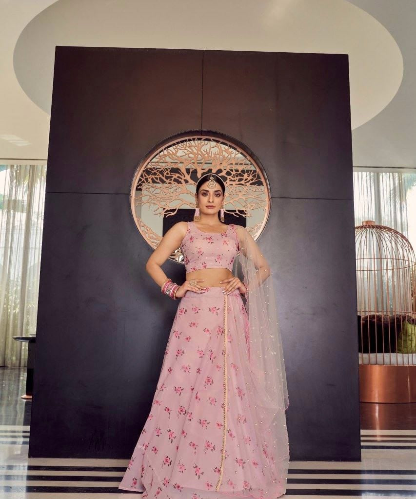 Elegant Look Georgette Satin Fabric Crafted Lehenga