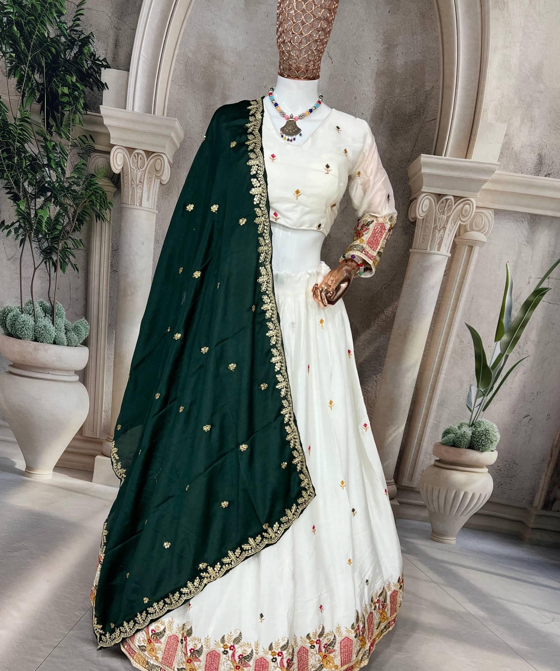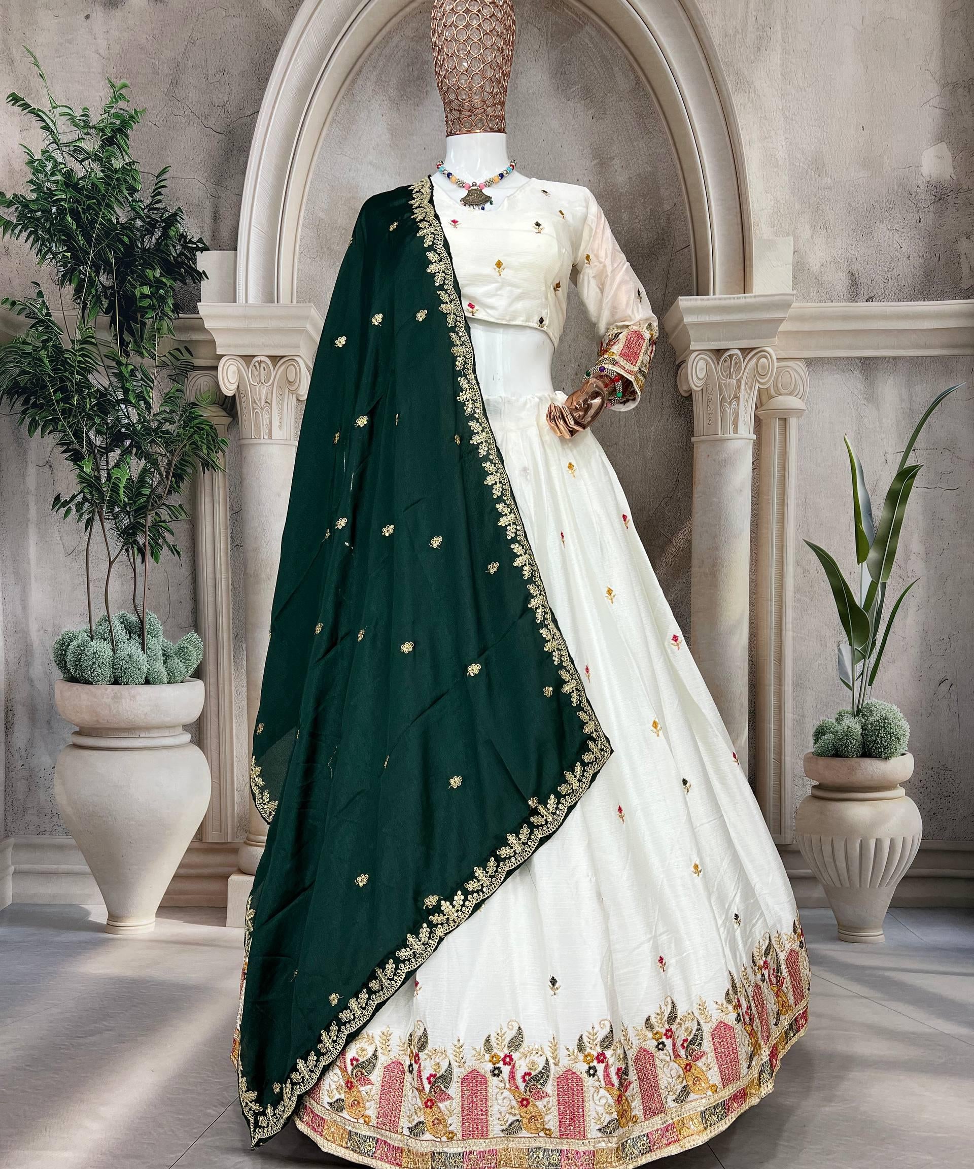 White Chinon Festive Lehenga