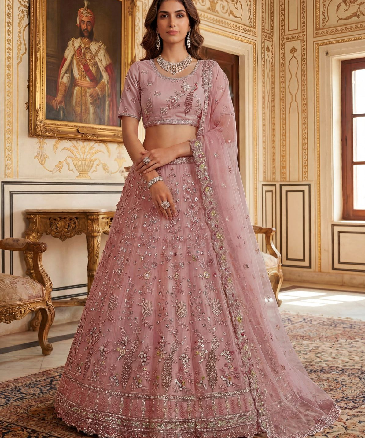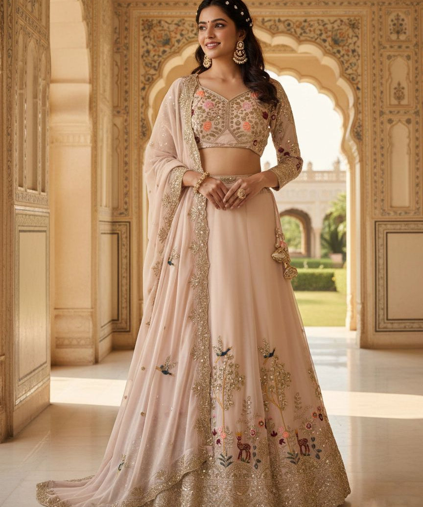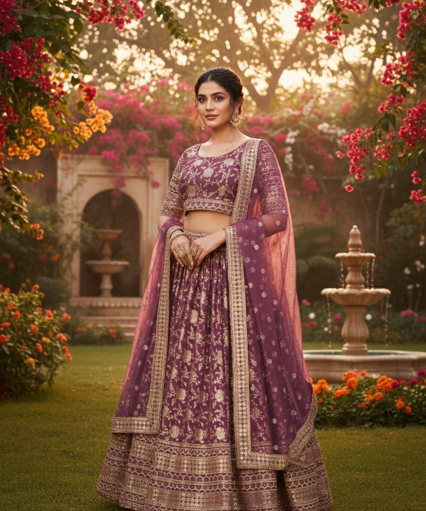 Premium Net Zari Embroidered Lehenga