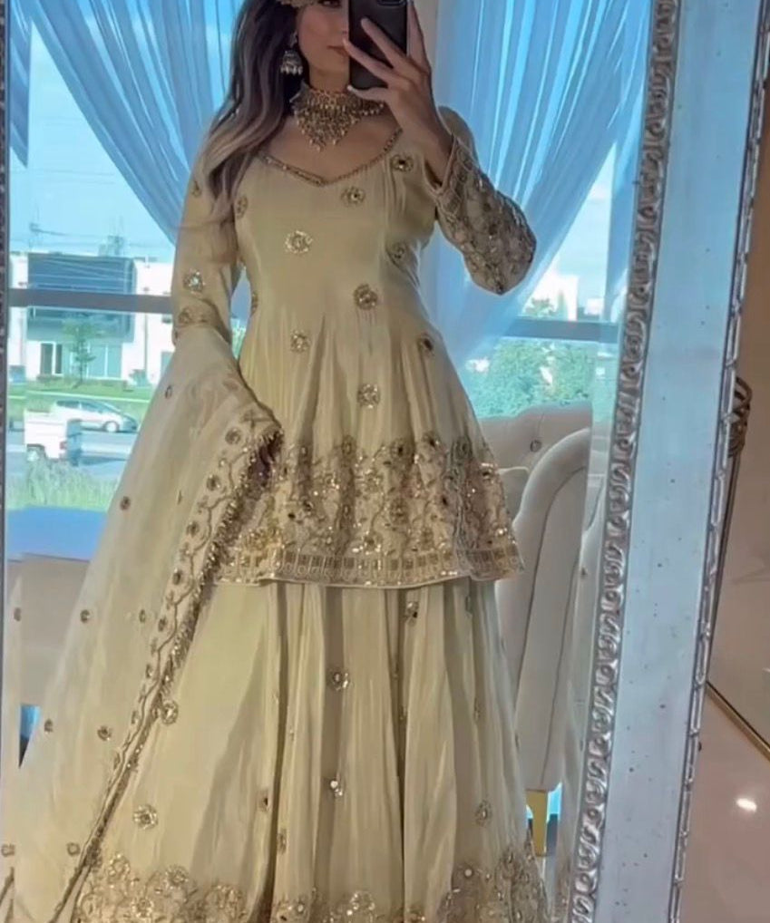 Stunning Embroidered Silk Top Lehenga