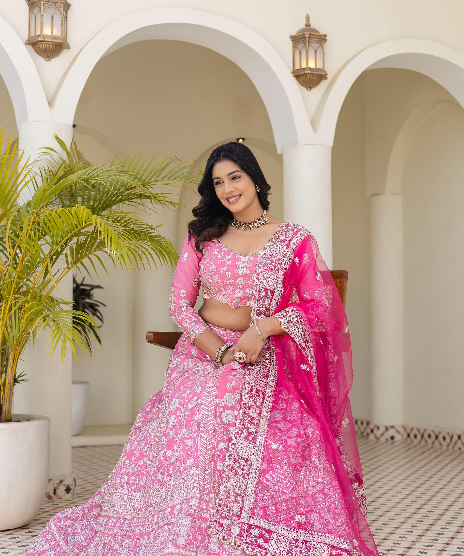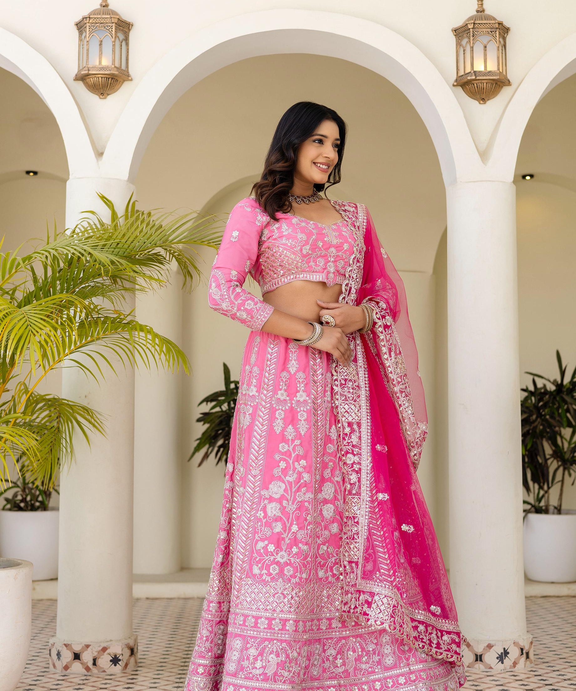 Radiate Pink Embroidered Lehenga
