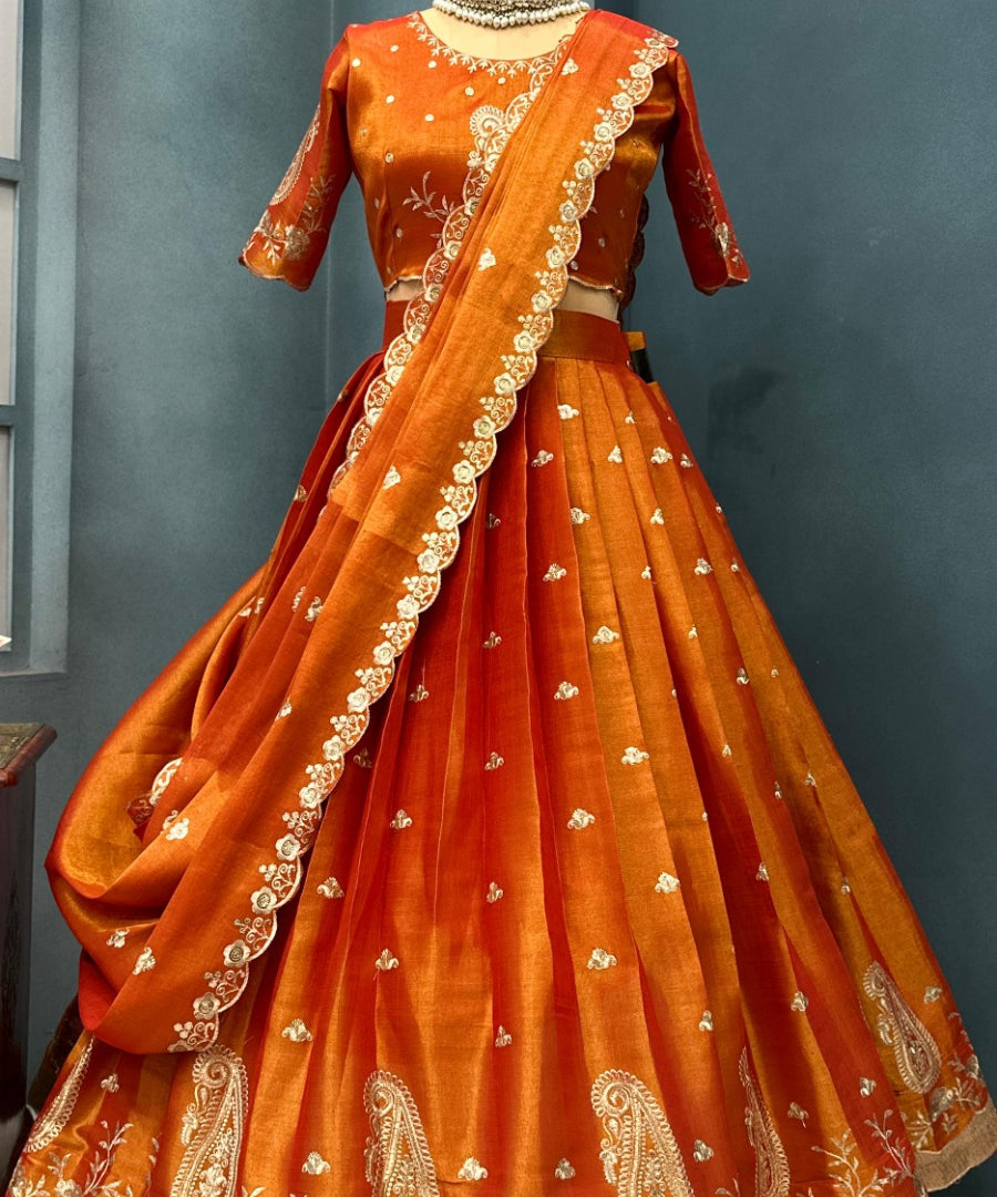 Orange Embroidered Georgette Lehenga
