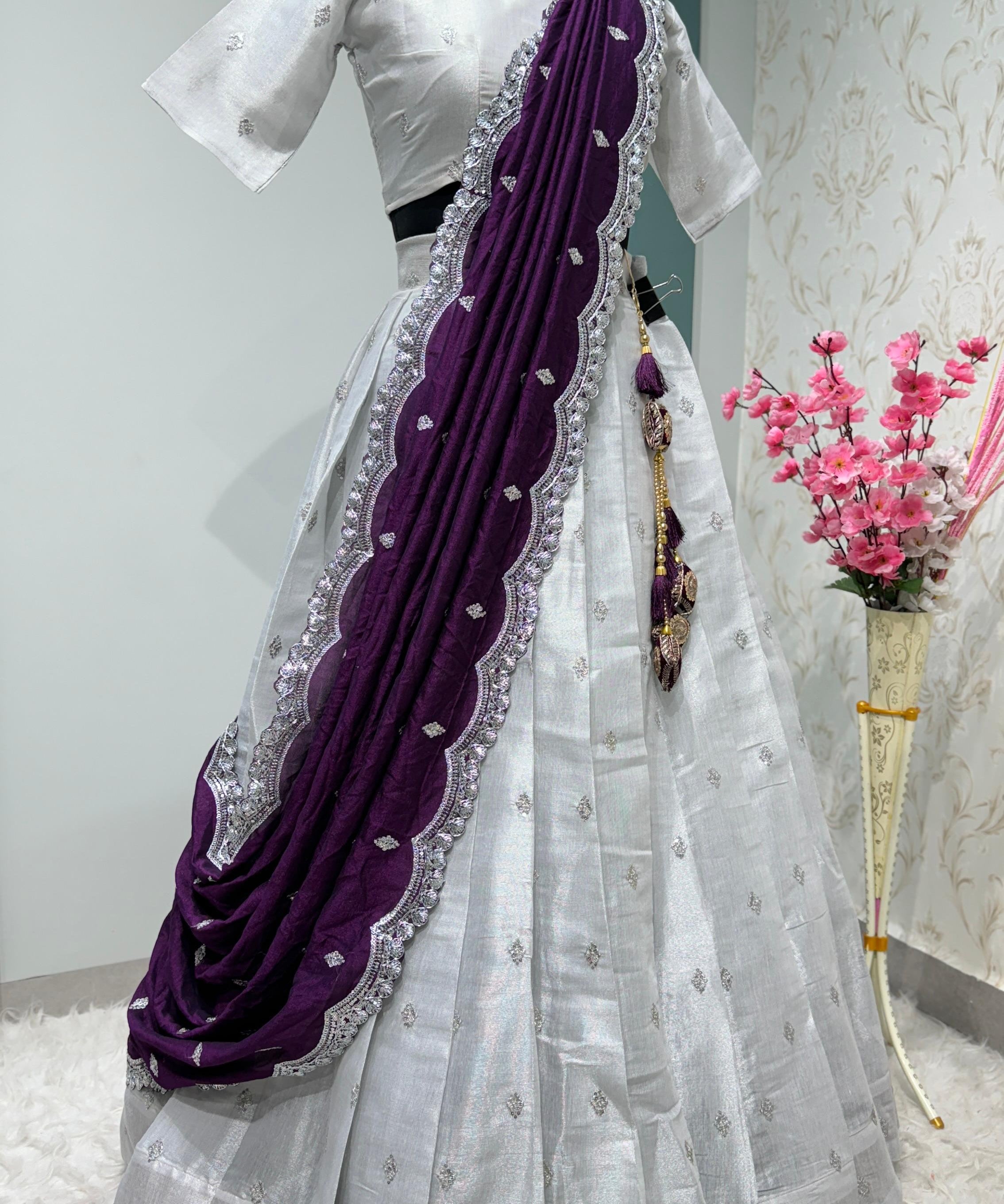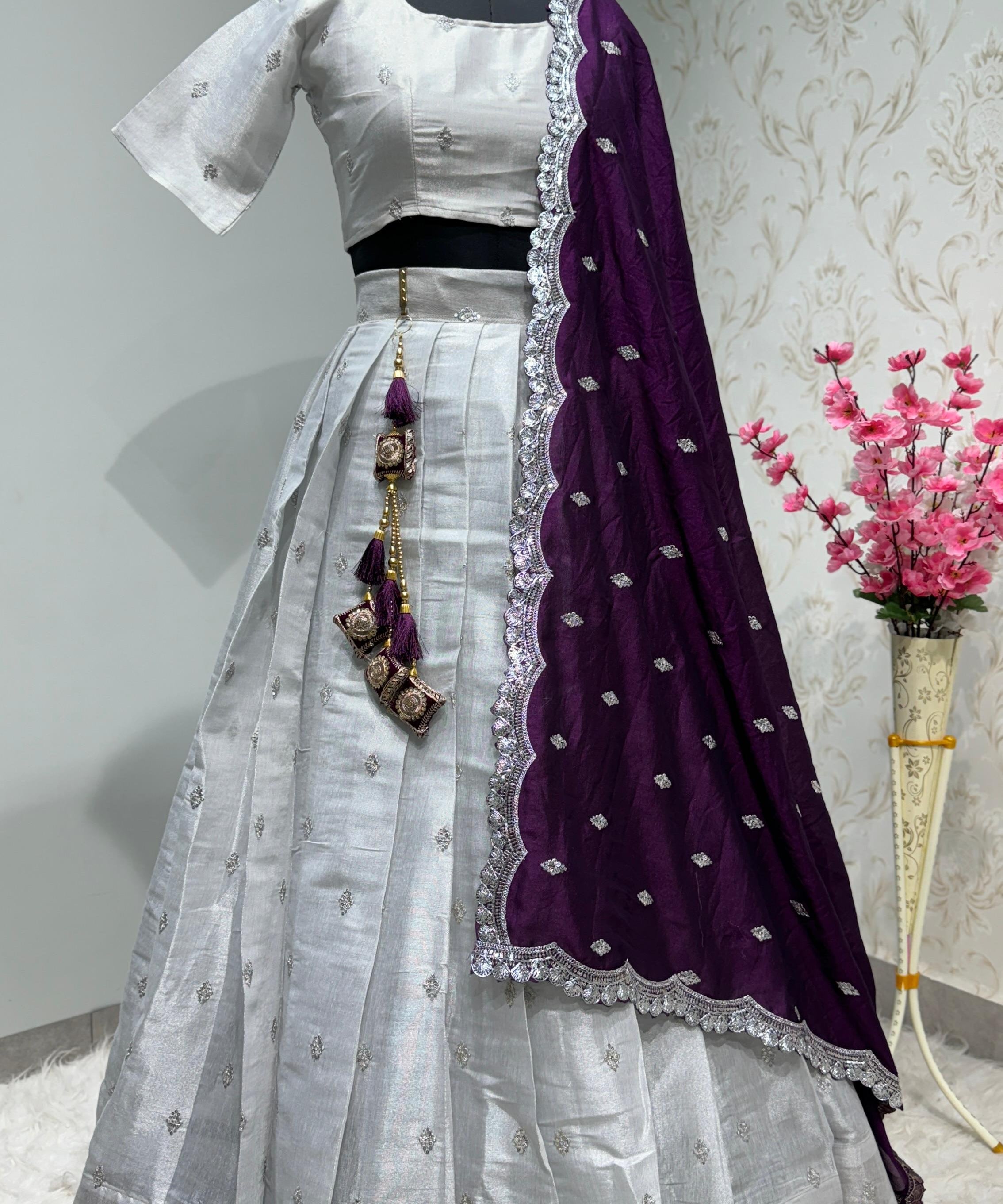 Silver Traditional Silk Lehenga Choli